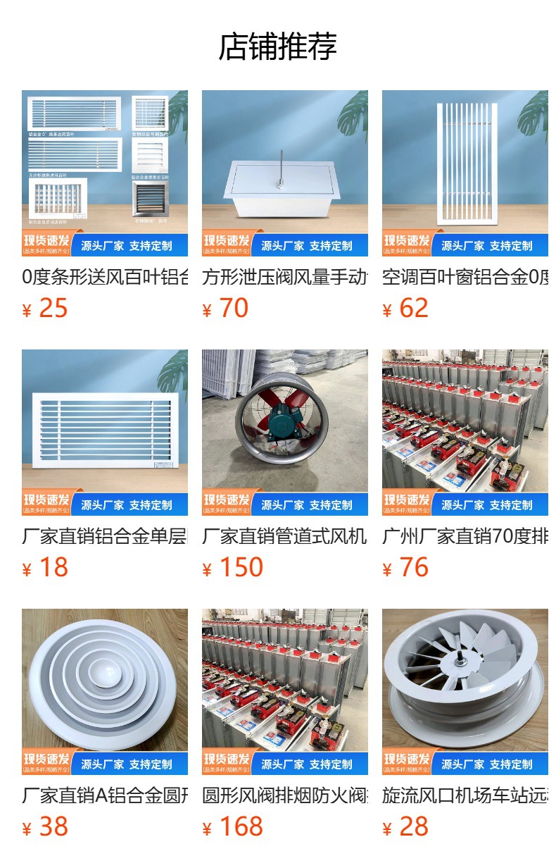 공장 직접 알루미늄 합금 단층 고정 셔터 비 셔터 도매 할인 레이어 조정 가능한 공기 배출구스토어 가기