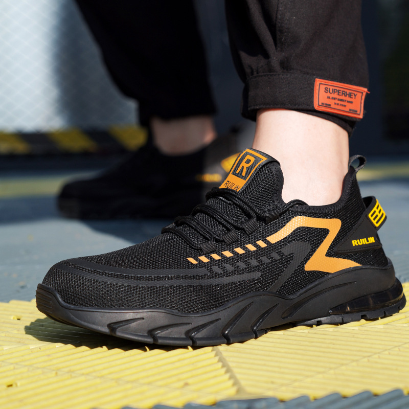 통기성 작업화 남성용, 야외 건설 현장 안전화, 충격 방지 및 관통 방지, 크로스보더 소프트솔 스틸토 작업화스토어 가기