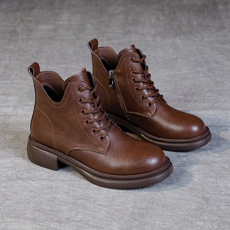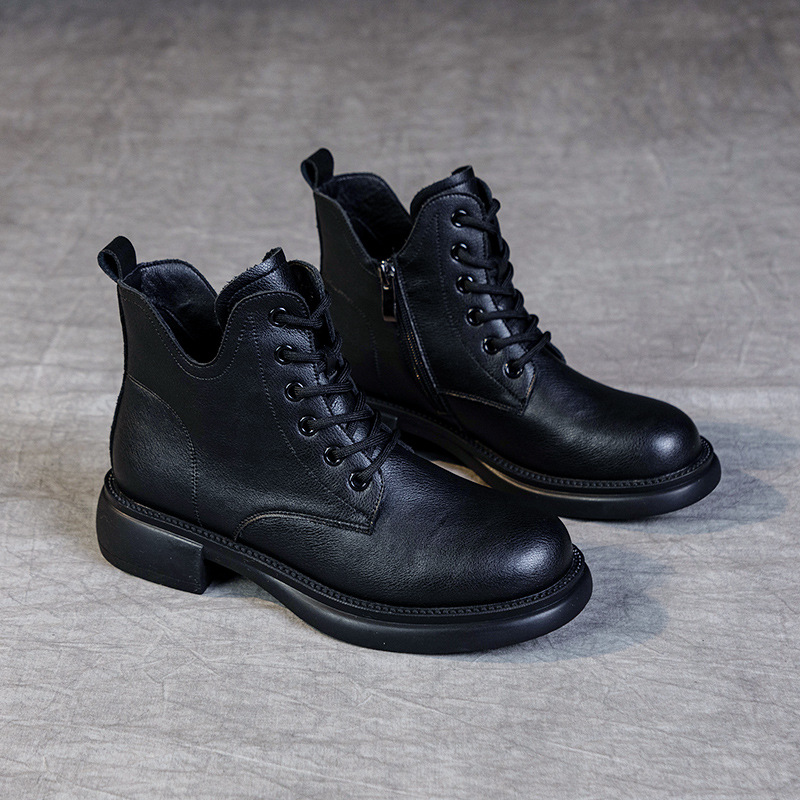 여성용 대형 사이즈 마틴 부츠 가을 겨울 부드러운 밑창 짧은 부츠 플랫 솔 2026 싱글 부츠 고무 밑창 레트로 플러스 벨벳 로우탑 가죽 신발