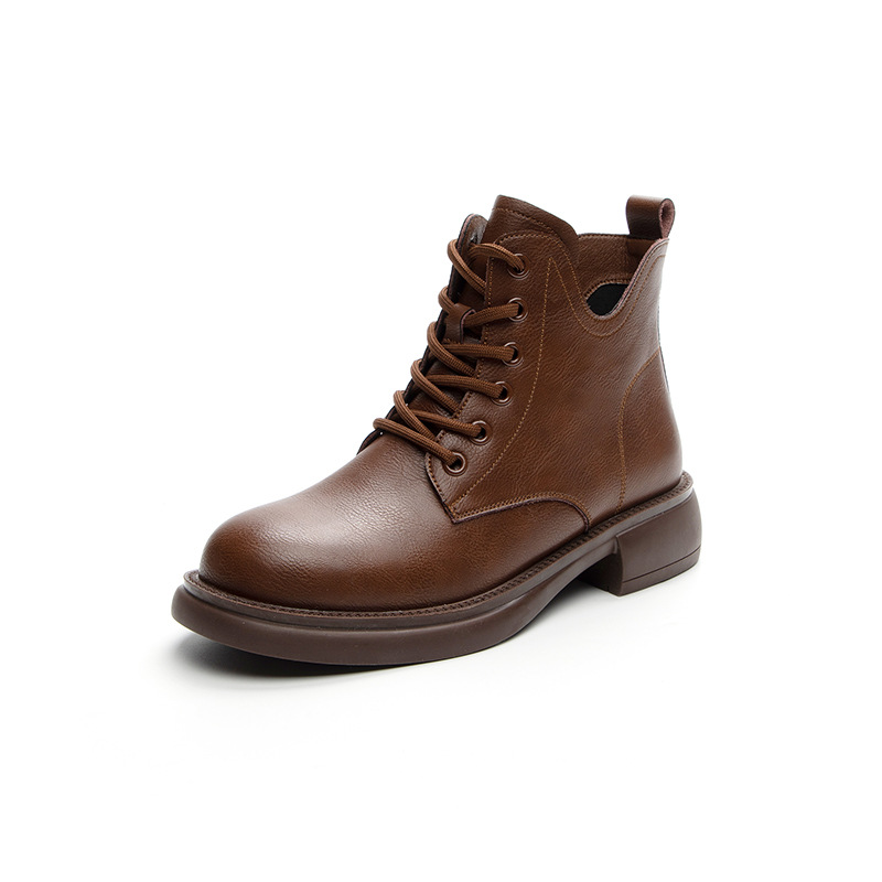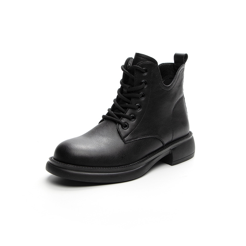 여성용 대형 사이즈 마틴 부츠 가을 겨울 부드러운 밑창 짧은 부츠 플랫 솔 2026 싱글 부츠 고무 밑창 레트로 플러스 벨벳 로우탑 가죽 신발스토어 가기