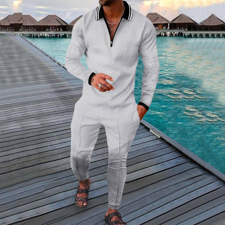 대외 무역 2022 가을 국경 폭발 유럽과 미국 아마존 긴 소매 바지 투피스 스포츠 레저 남성 세트