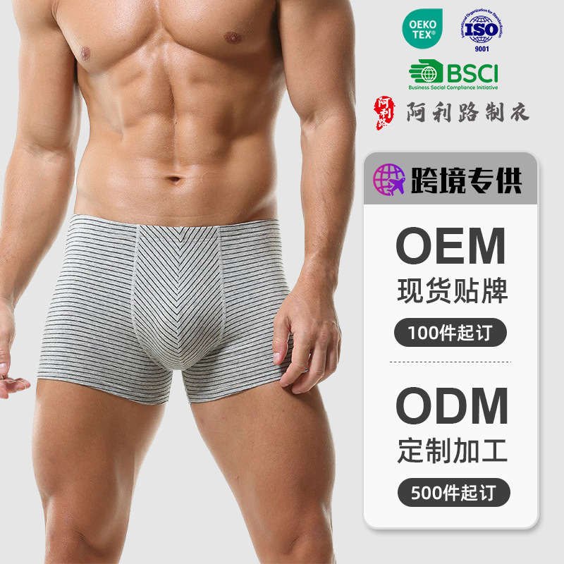 맞춤형 신형 남성 피부 친화적 통기성 스트라이프 스트레치 코튼 남성 복서 반바지 편안한 남성 복서 반바지 남성 속옷스토어 가기
