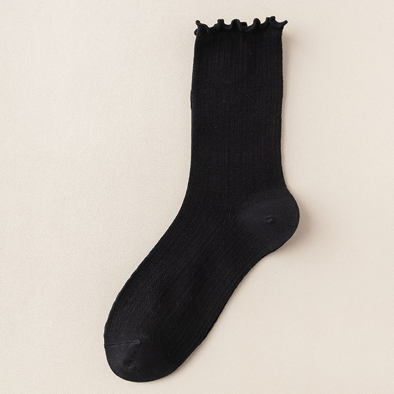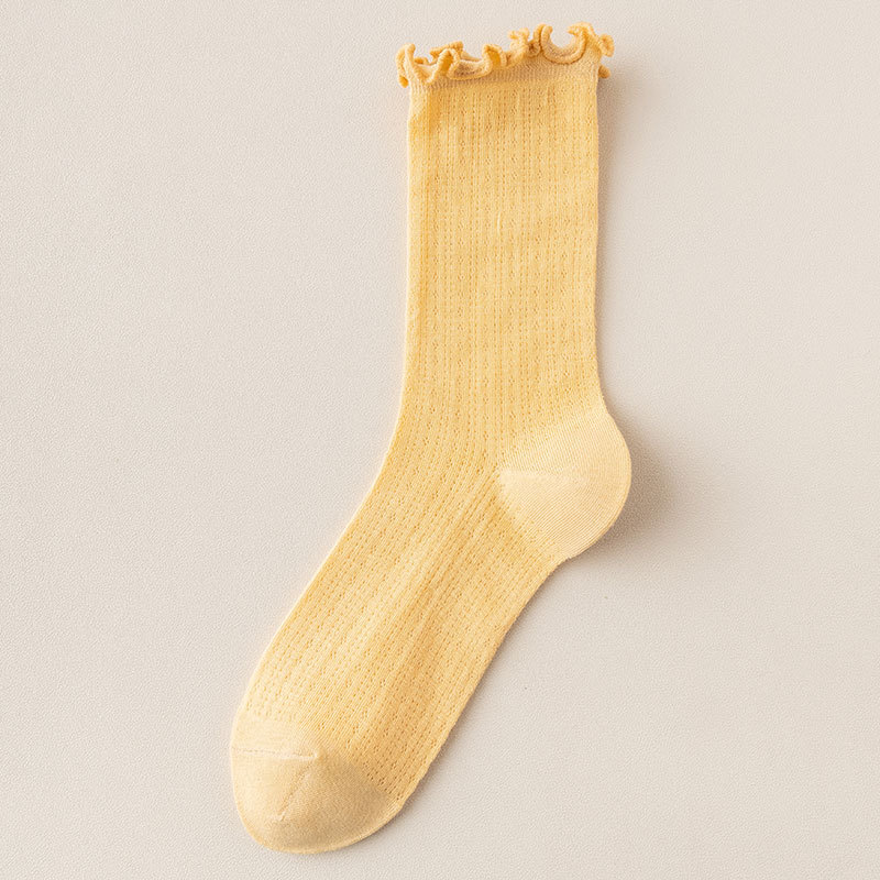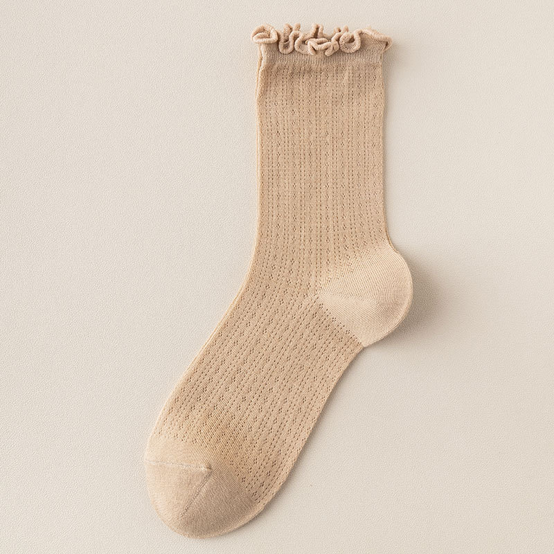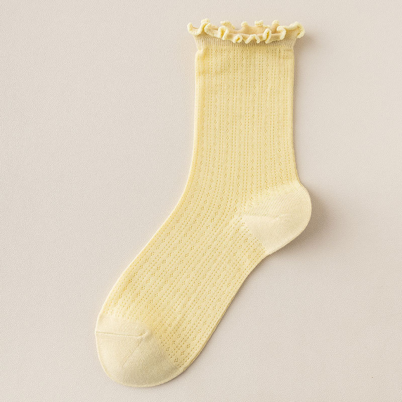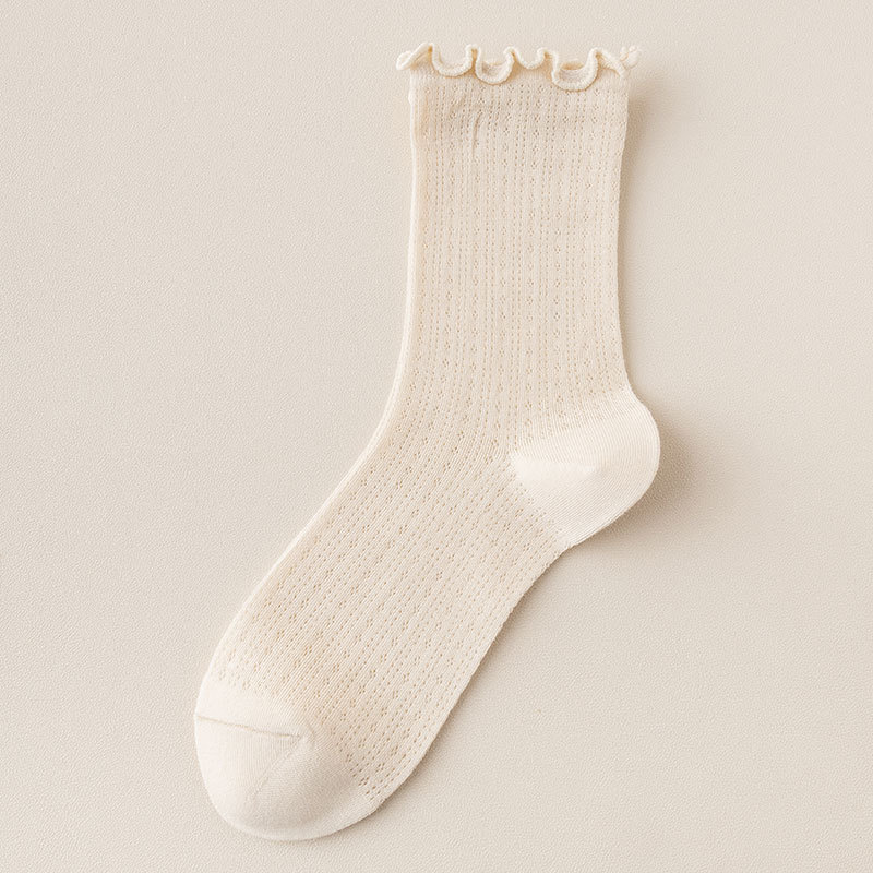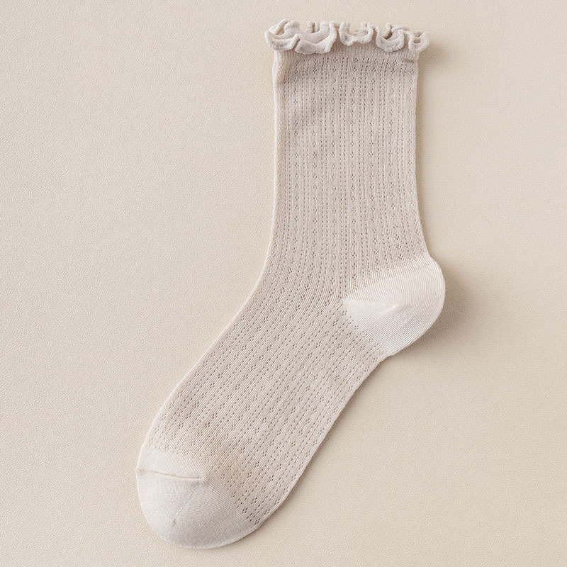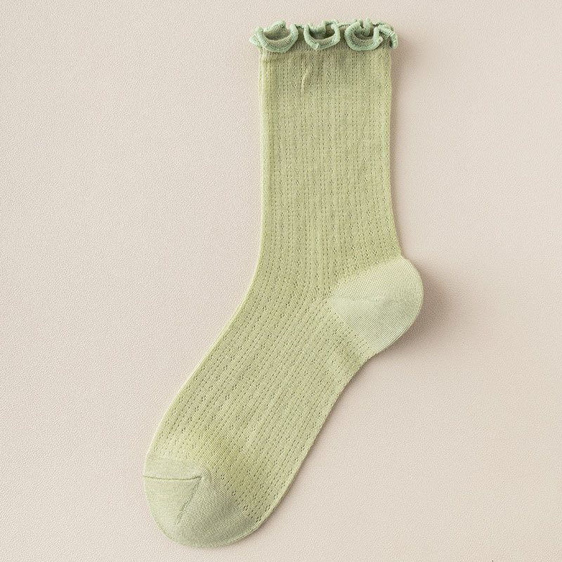 여성용 양말 가을 얇은 단색 레이스 파일 에어컨 통기성 일본 jk 레이스 느슨한 스타킹