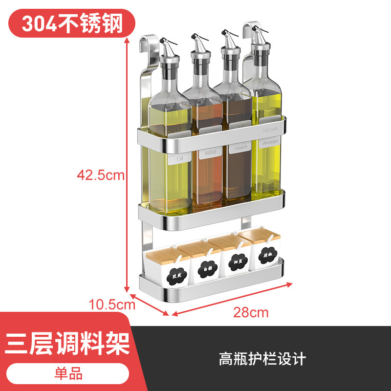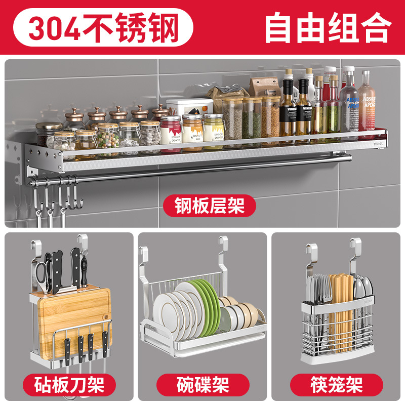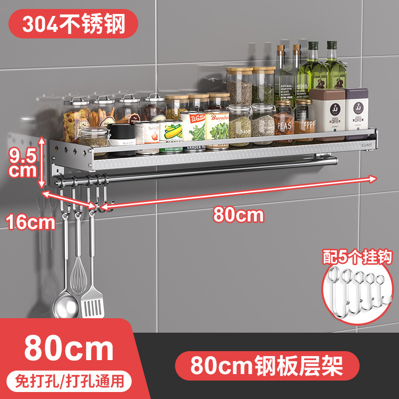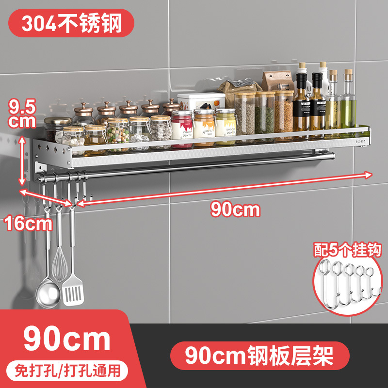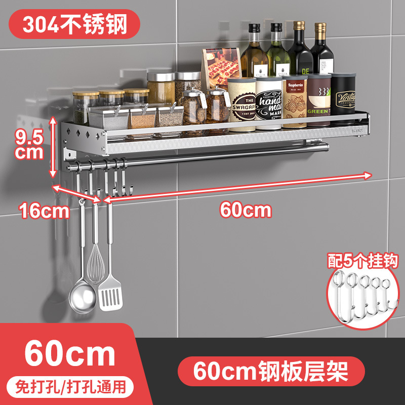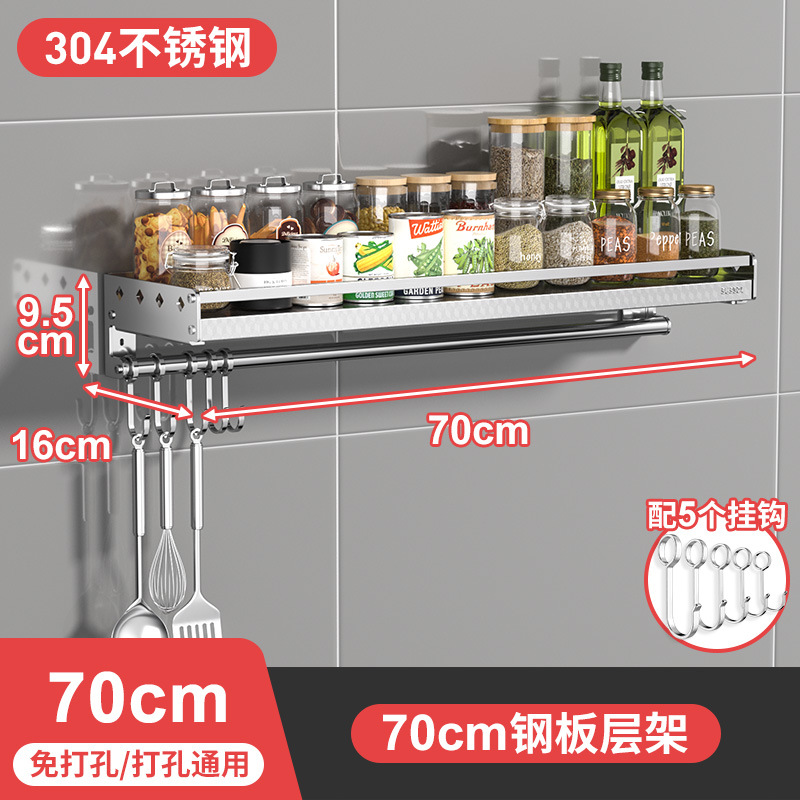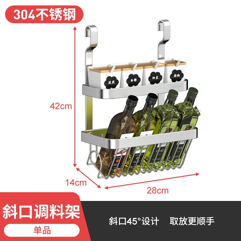 304 스테인레스 스틸 주방 랙 벽걸이 걸이 걸이 세트 조미료 랙 벽 조미료 보관 랙