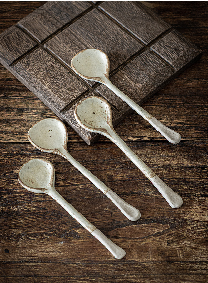 꽃집 시리즈 수제 도자기 숟가락 가정용 숟가락 레트로 스타일 애프터눈 티 믹싱 스푼 라이트 럭셔리 레트로스토어 가기
