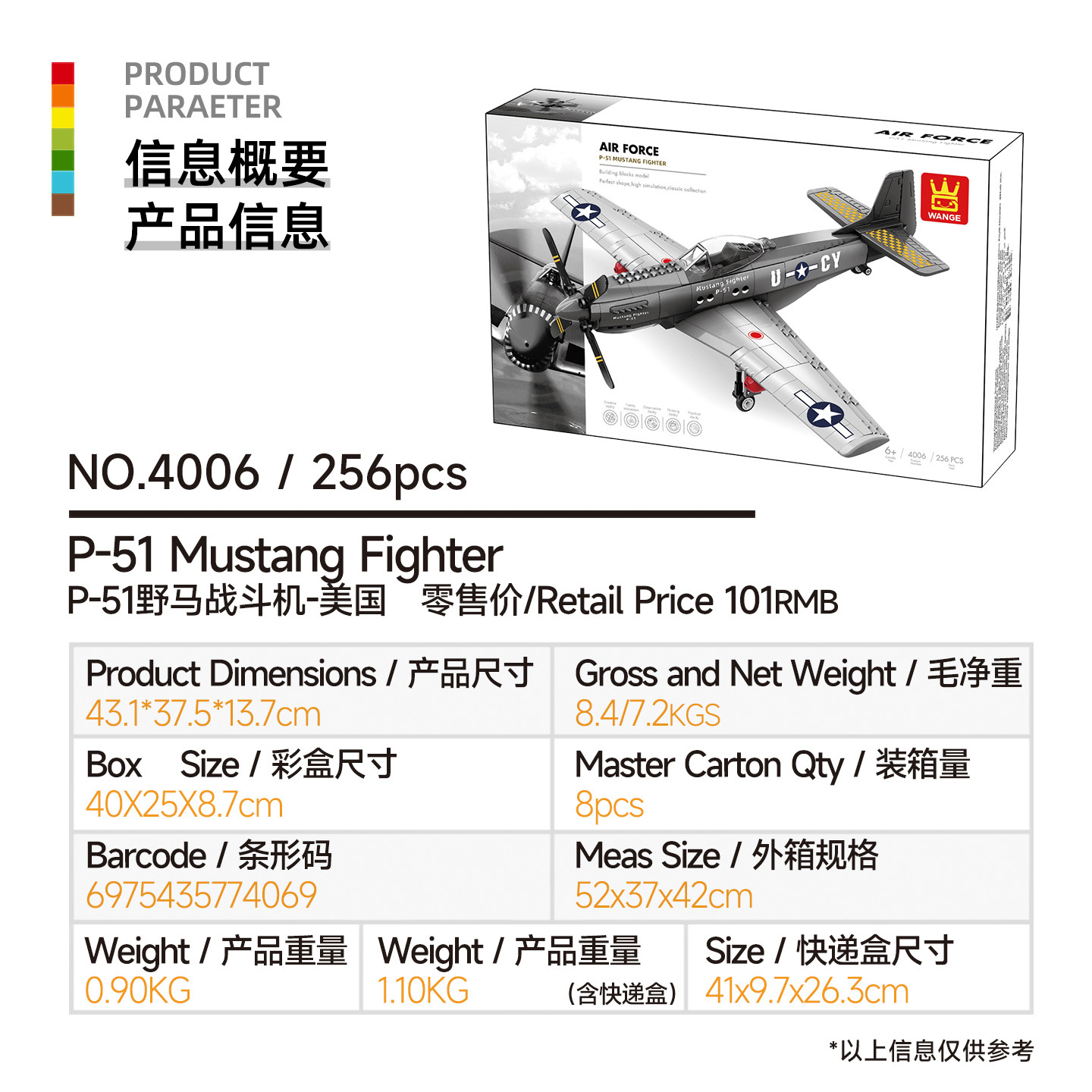 Wanger 빌딩 블록 머스탱 전투기 군사 모델 항공기 호환 작은 입자 빌딩 블록 교육 장난감 4006
