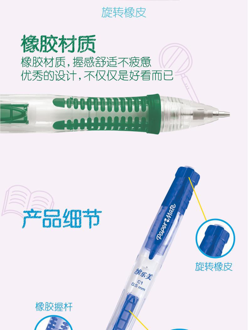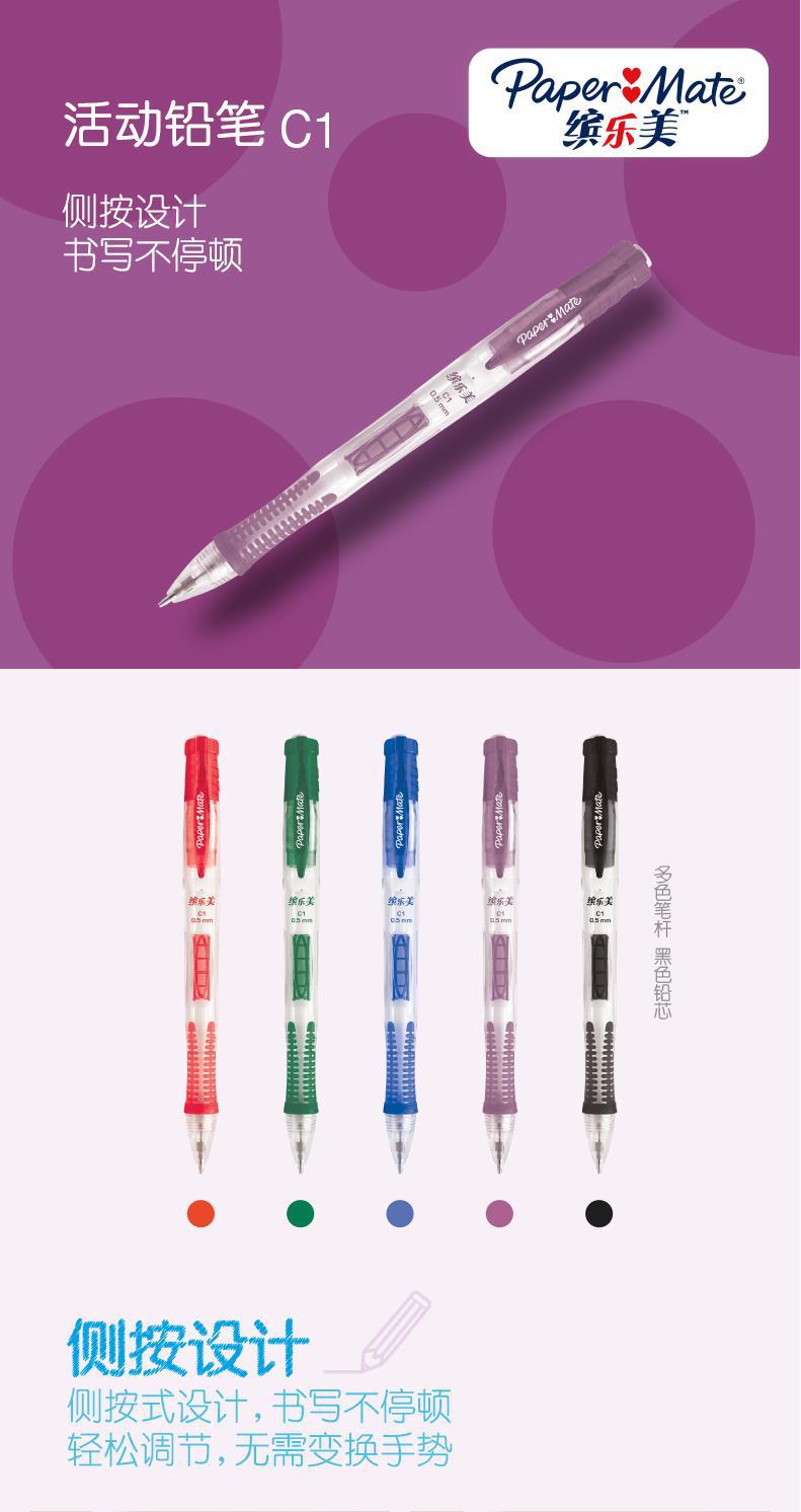 미국 PaperMate Plantronics 샤프 펜슬 C1 학생 0.5mm 누르기 컬러 활동 연필 지우개스토어 가기