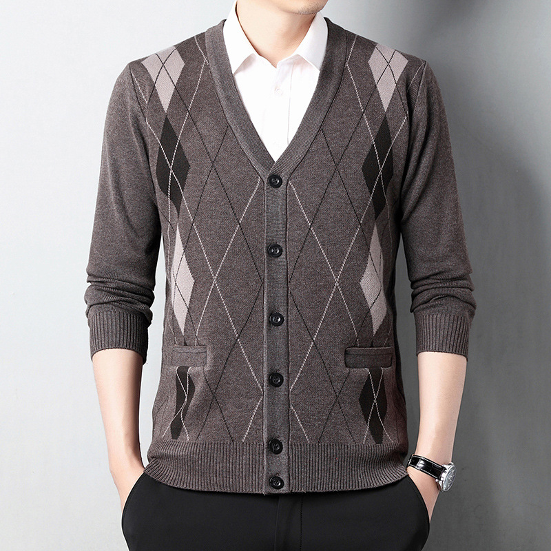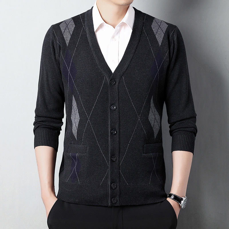 가을 겨울 니트 가디건 남성용 울 스웨터 긴팔 중년용 두꺼운 보온 비즈니스 코트 아빠룩 캐주얼 이너웨어스토어 가기