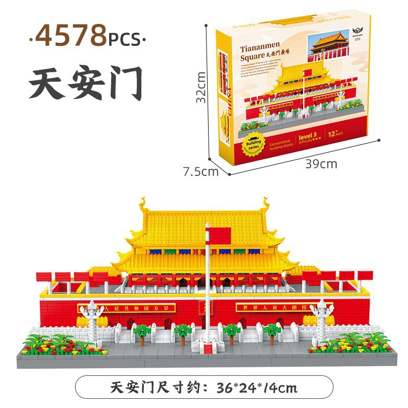 황허루 조립식 블록 장난감, 텐안문 입체 퍼즐, 레고와 호환, 3-6세 어린이 교육용스토어 가기