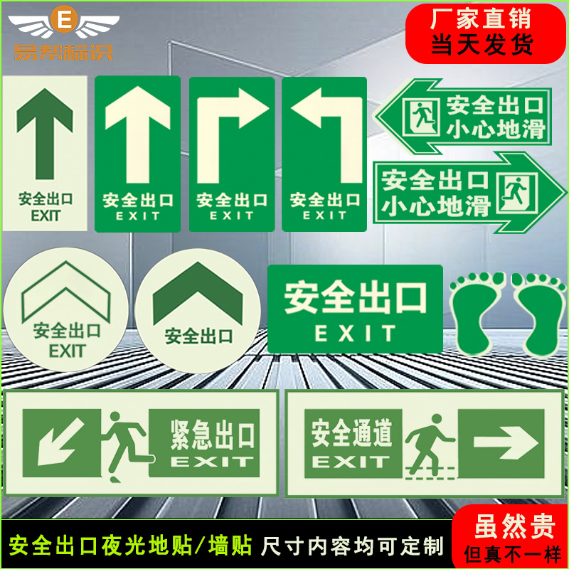 공장 직접 머리 PVC 접착제 화재 대피 표지판 표지판 비상 화재 안전 표지판이있는 빛나는 라벨스토어 가기