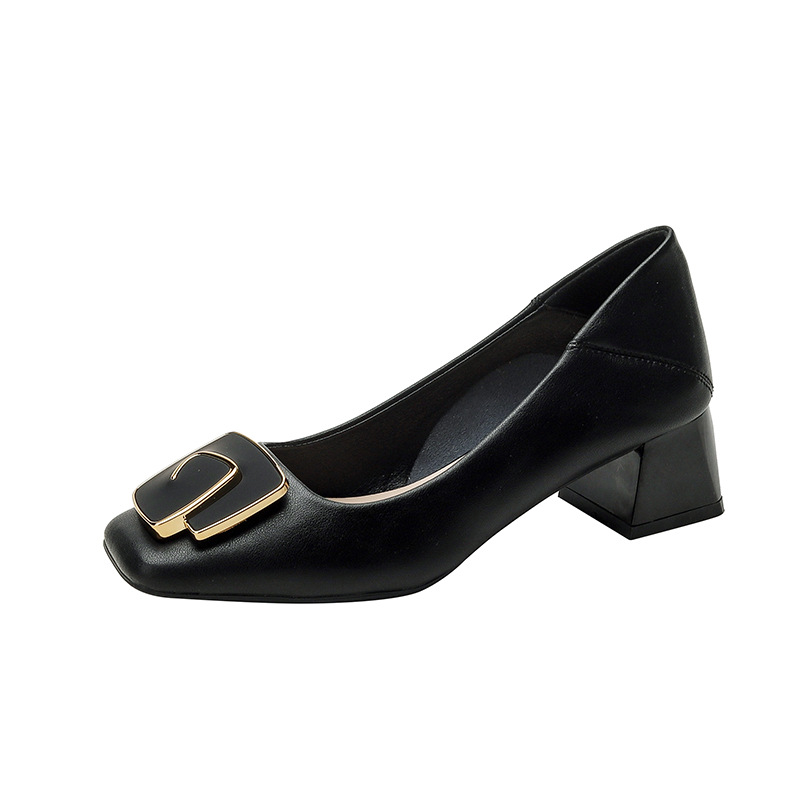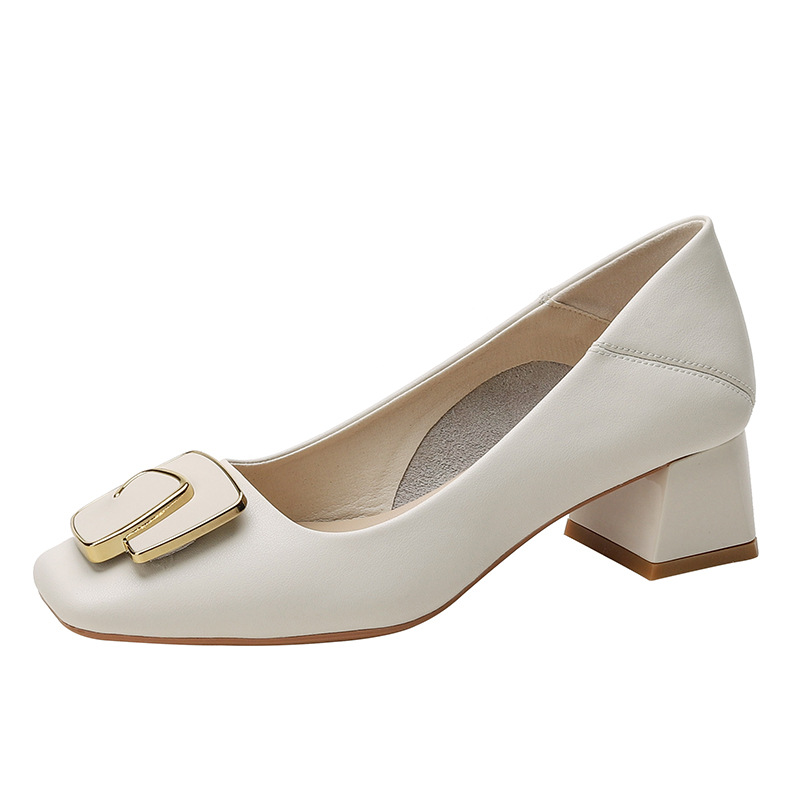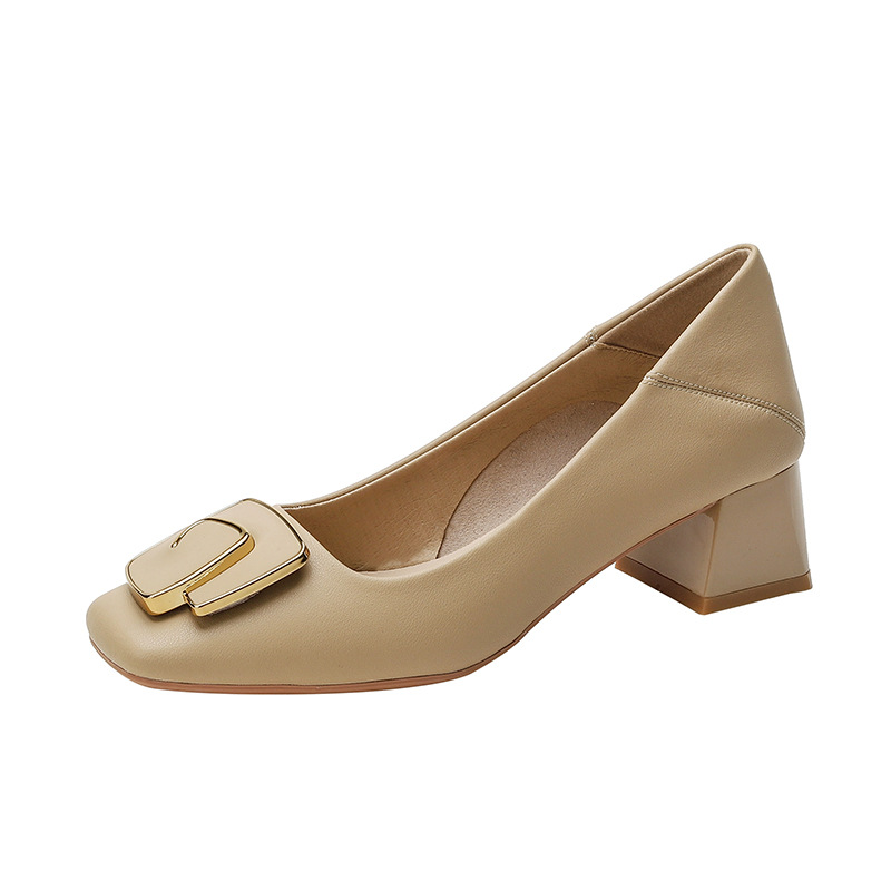 855-63 부드러운 가죽 싱글 슈즈 여성용 2022 새로운 가을 스퀘어 토 미드힐 얕은 입 우아한 모든 매치 밀크 슈즈 펌프스