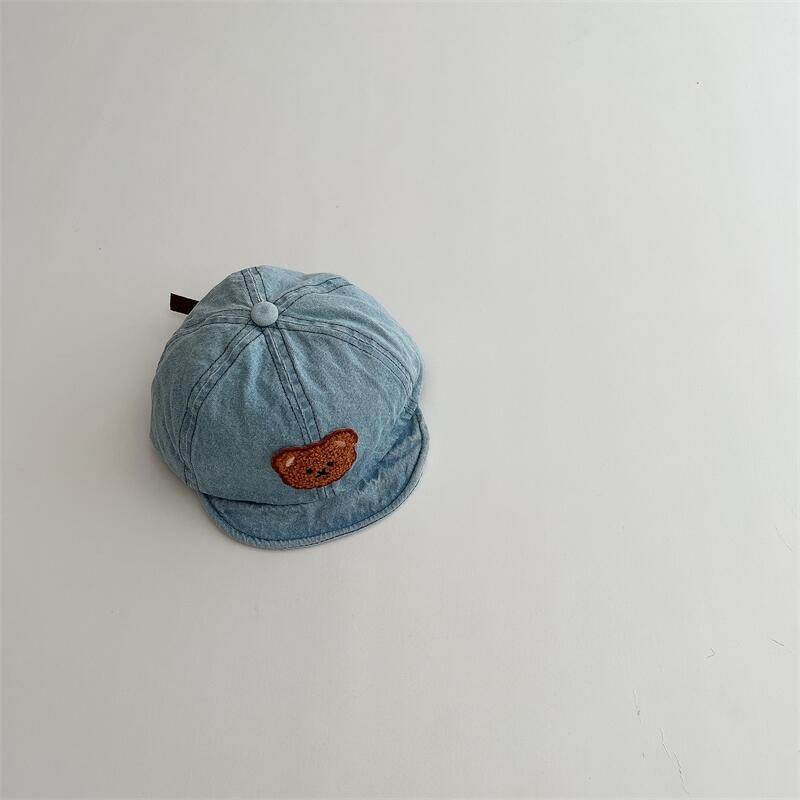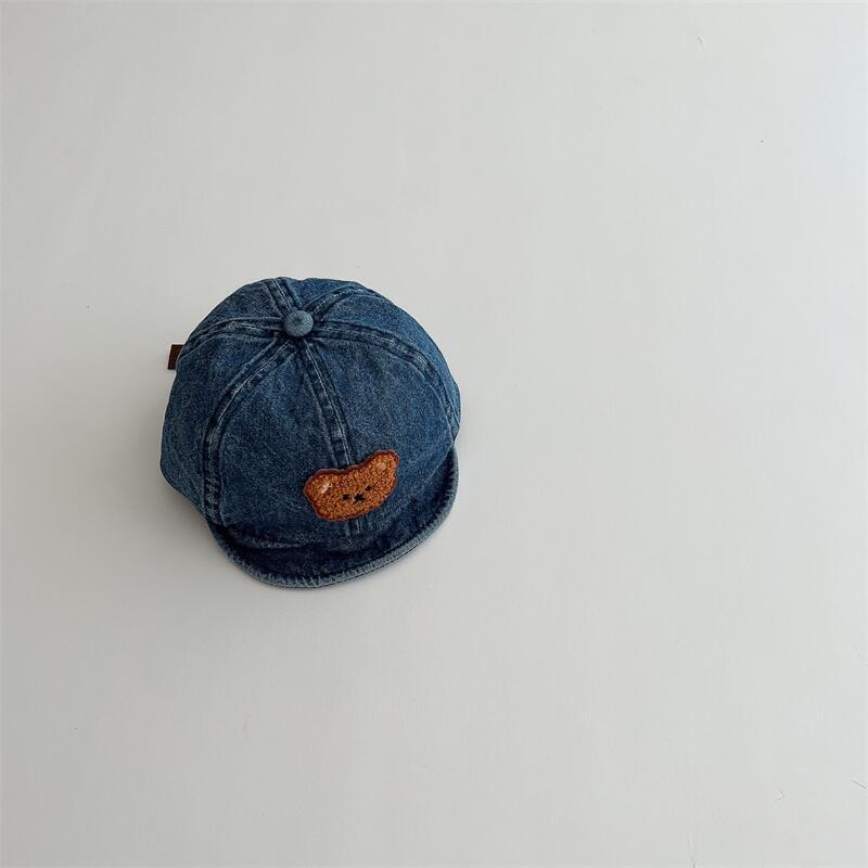 한국식 어린이 정점 모자 데님 씻은 천 태양 모자 귀여운 곰 아기 단색 부드러운 테두리 야구 모자