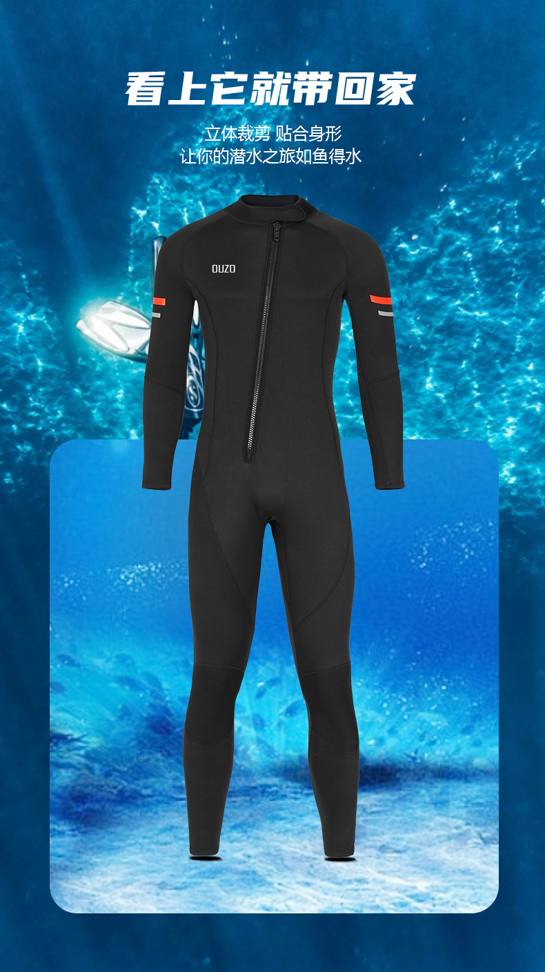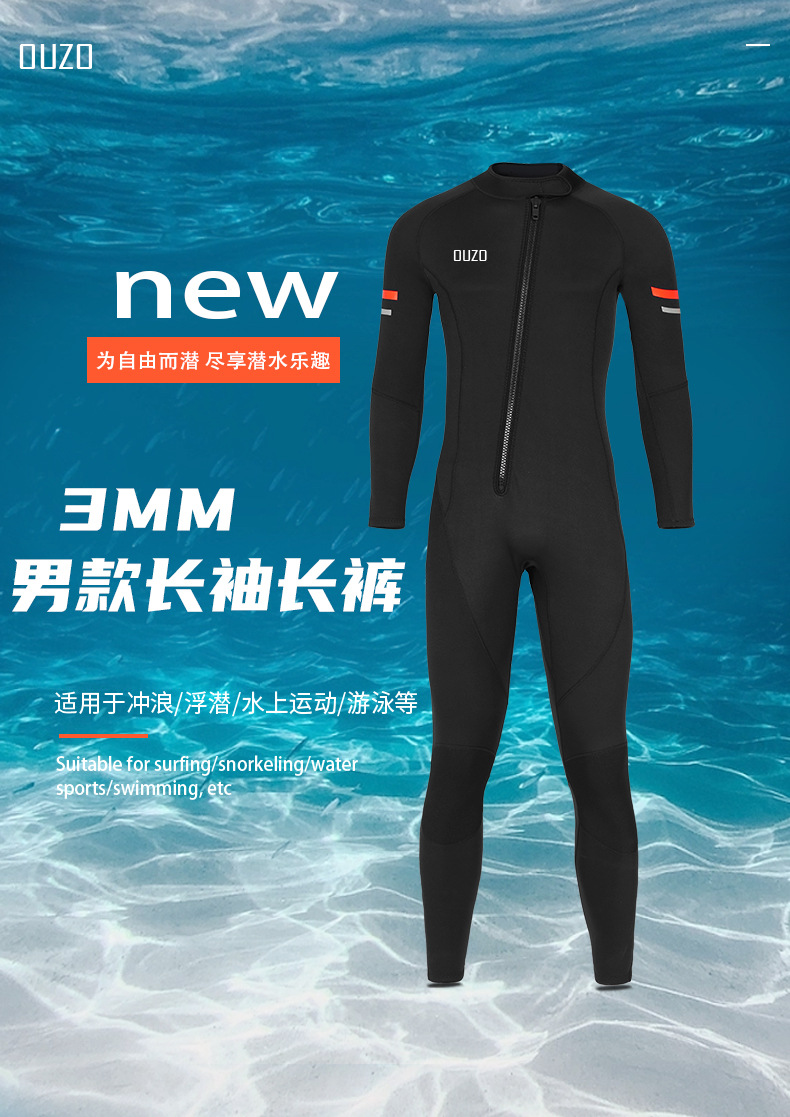 OUZO 새로운 3mm 잠수복 남성용 원피스 두꺼운 따뜻한 방한 잠수복 스노클링 슈트 서핑 슈트 겨울 수영복스토어 가기