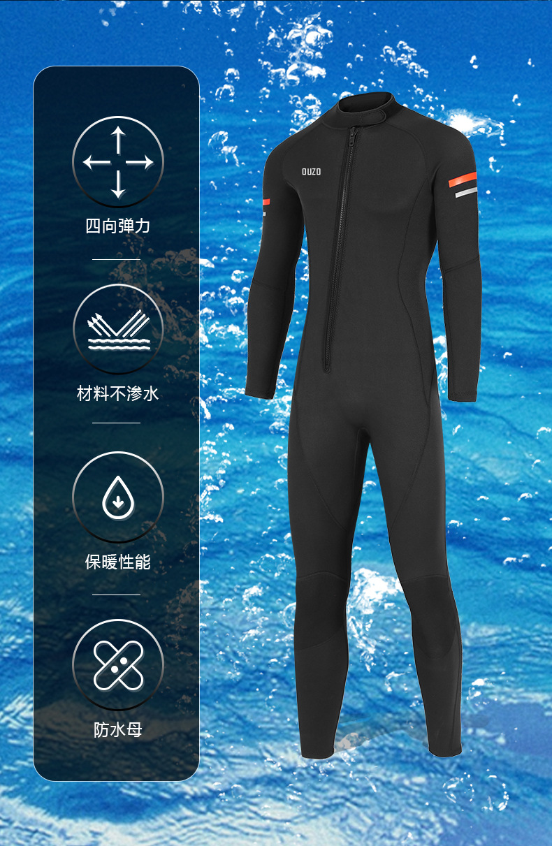 OUZO 새로운 3mm 잠수복 남성용 원피스 두꺼운 따뜻한 방한 잠수복 스노클링 슈트 서핑 슈트 겨울 수영복