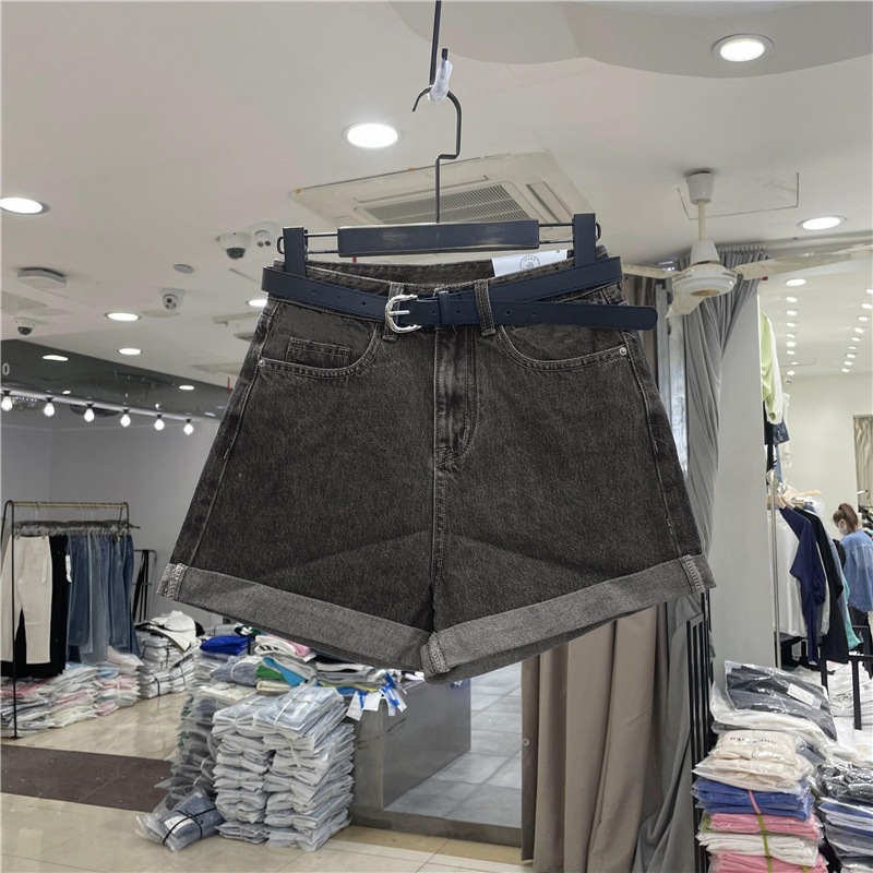반바지 여자의 시크한 스타일 한국식 느슨한 학생 컬 와이드 레그 얇은 슬리밍 캐주얼 하이 웨이스트 데님 핫 팬츠 여름스토어 가기