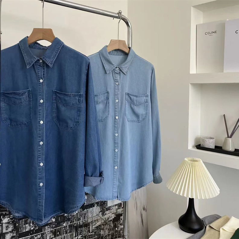 부드러운 텐셀 데님 셔츠 2024 얇고 매끄러운 다용도 슬림핏 한국 스타일 레이어드 셔츠 여성용스토어 가기