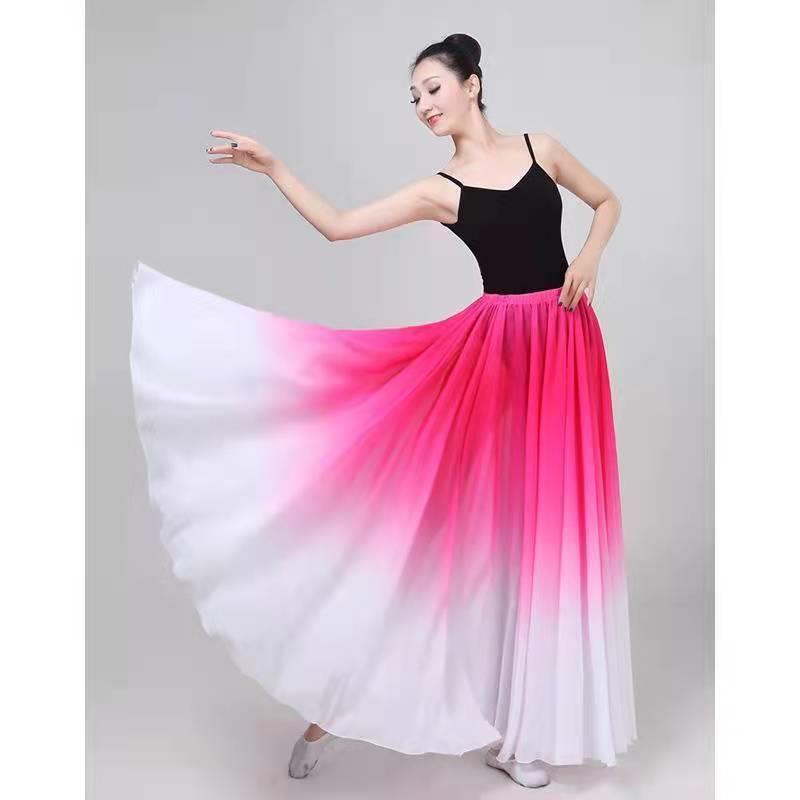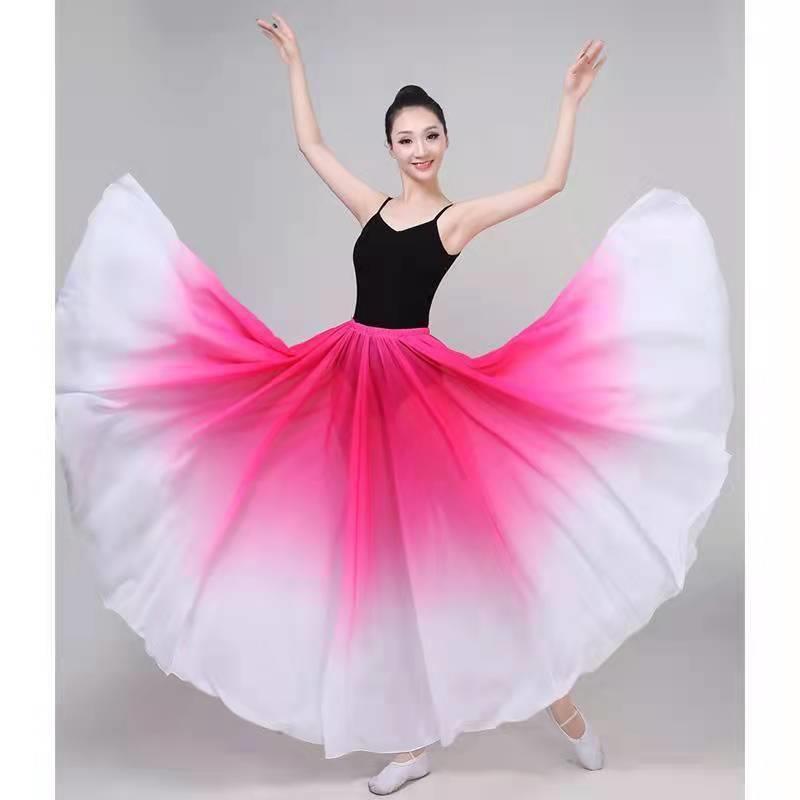 새로운 그라디언트 컬러 대형 스윙 스커트 720 도 댄스 스커트 여성 우아한 중국 스타일 아트 시험 춤 발레 연습 옷스토어 가기