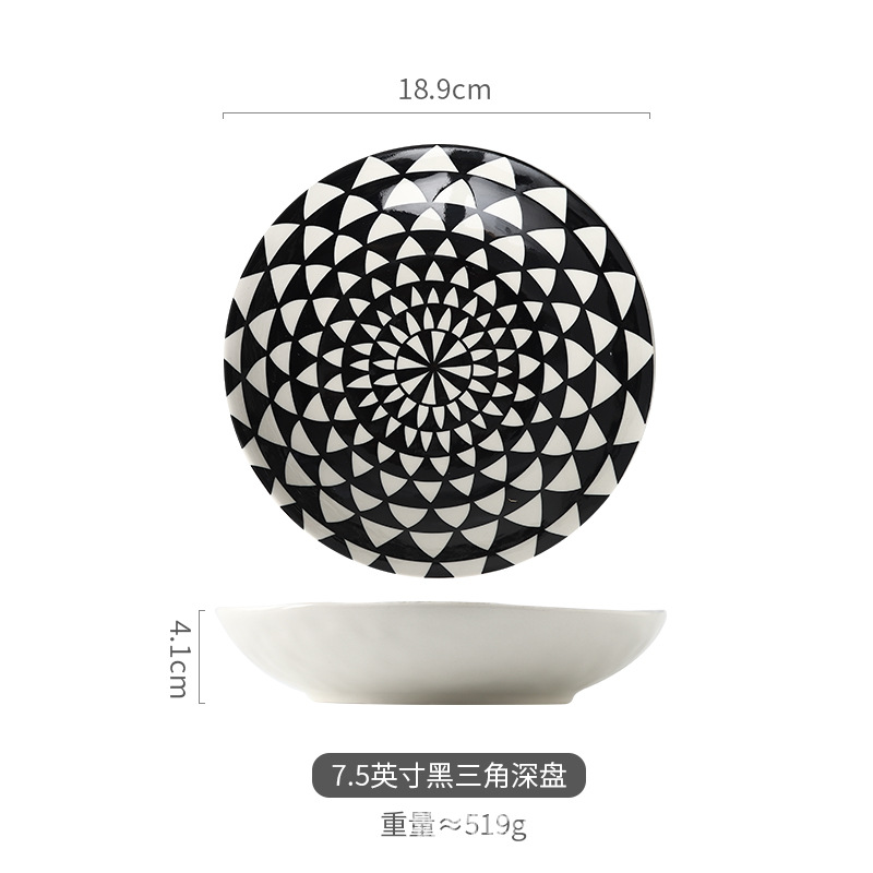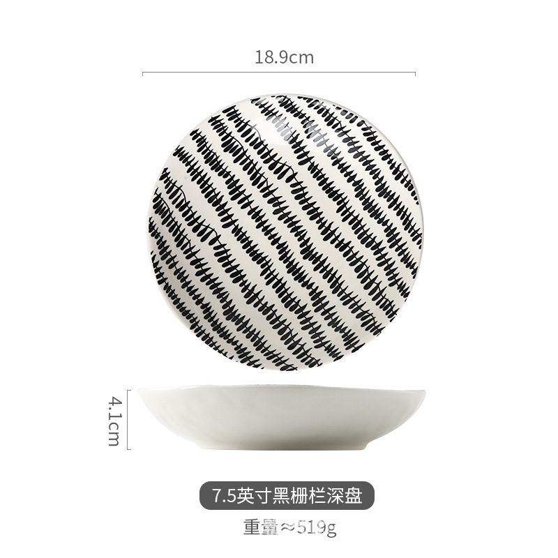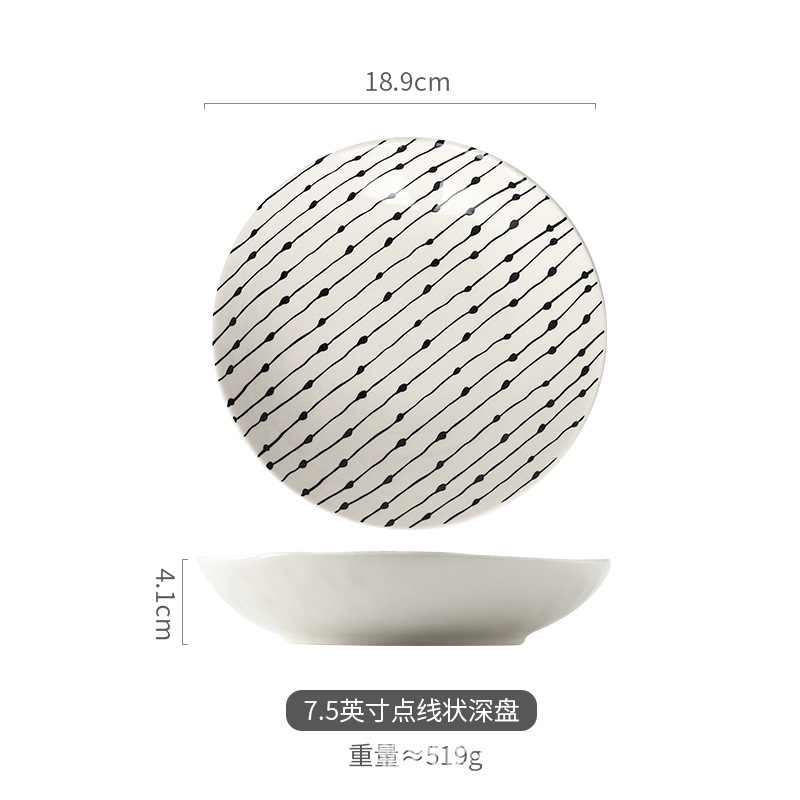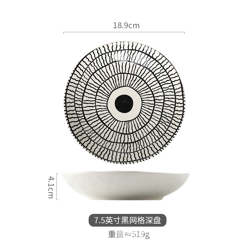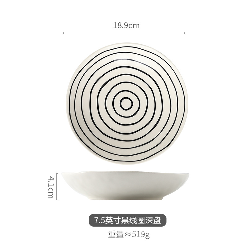 북유럽 7.5 인치 기하학적 라인 고급 딥 라운드 플레이트 세라믹 플레이트 매일 실용적인 과일 샐러드 플레이트