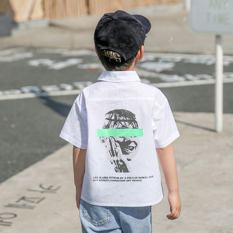 2023 년 여름 소년 반팔 셔츠 한국식 캐주얼 화이트 어린이 탑 남아 라펠 반 소매스토어 가기
