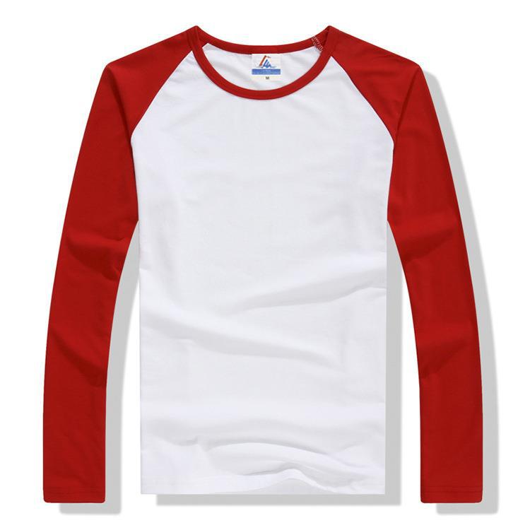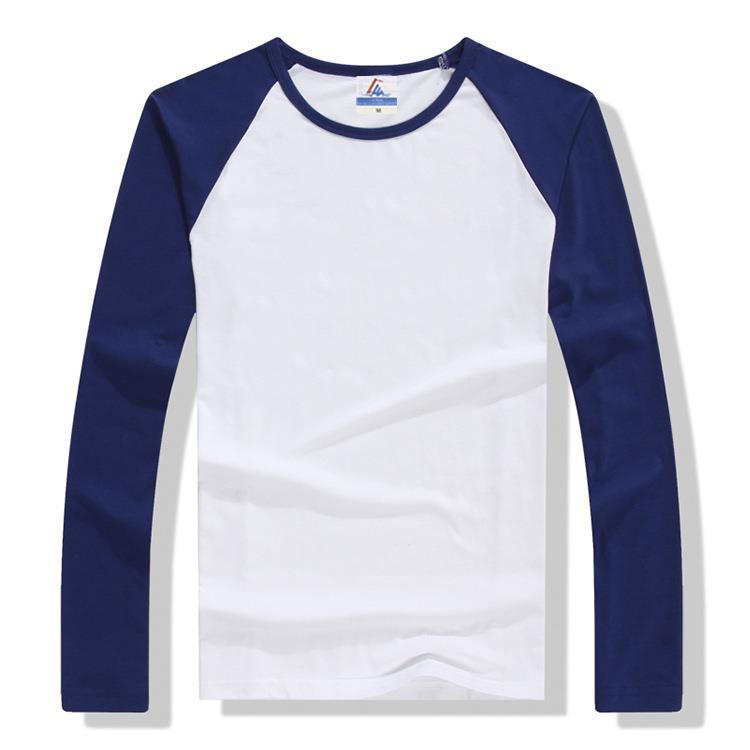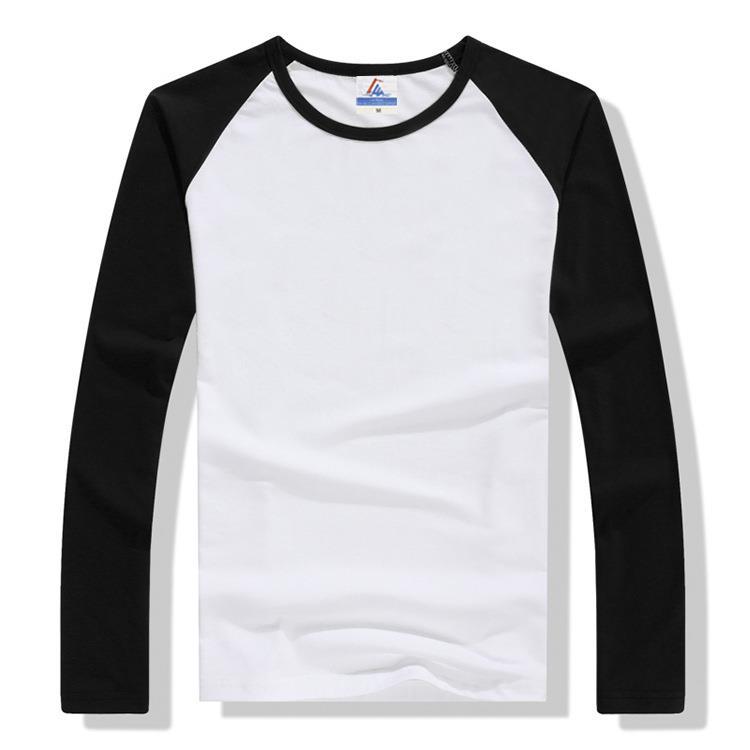 라이크라 코튼 남성 라글란 긴 소매 단색 무지 크루 넥 티셔츠 봄과 가을 남성 베이스 광고 셔츠 문화 셔츠 도매스토어 가기