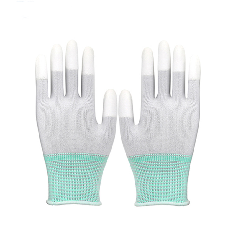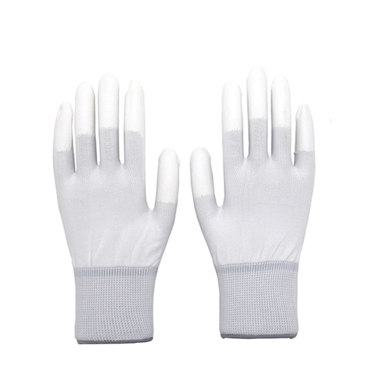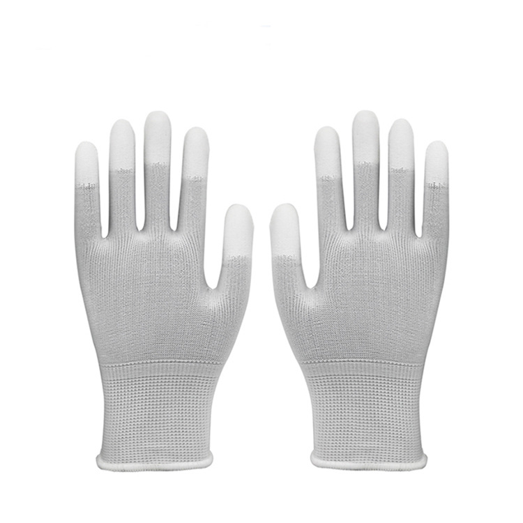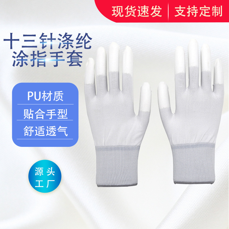 PU 코팅 장갑 13 바늘 접착제 먼지가없는 작업 보호 마모 방지 미끄럼 방지 통기성 코팅 노동 보호 장갑 도매