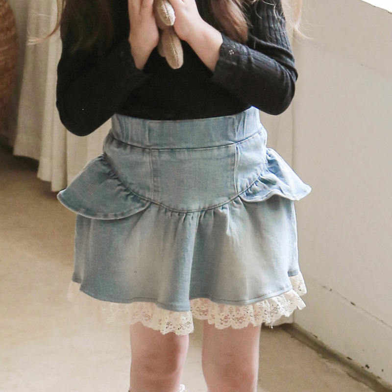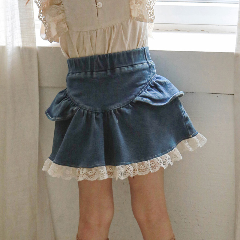 소녀의 데님 스커트 2024 봄 딸기 무용 아동복 소녀 스타일라인 레이스 공주 데님 스커트스토어 가기