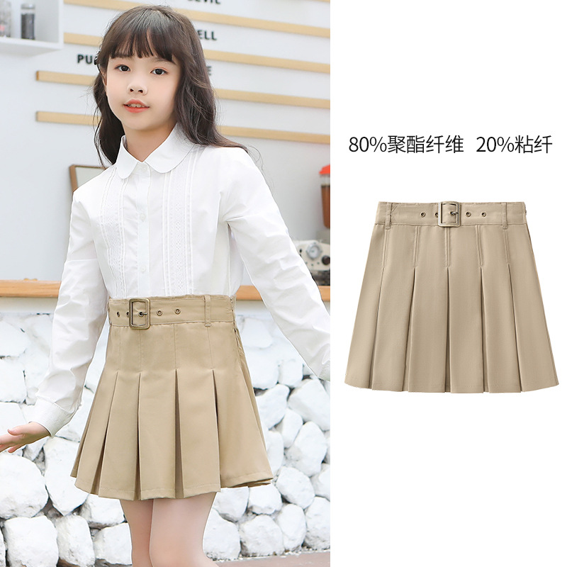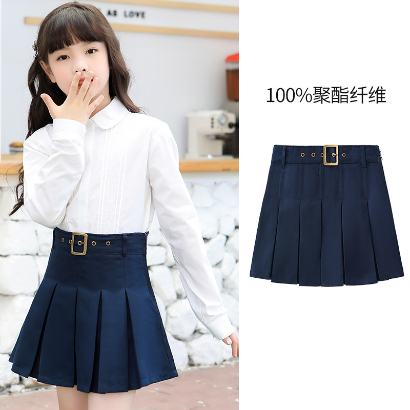 여자 카키 교복 치마 어린이 학생 치마 일본 버클 짧은 치마 초등학생 네이비 주름 치마