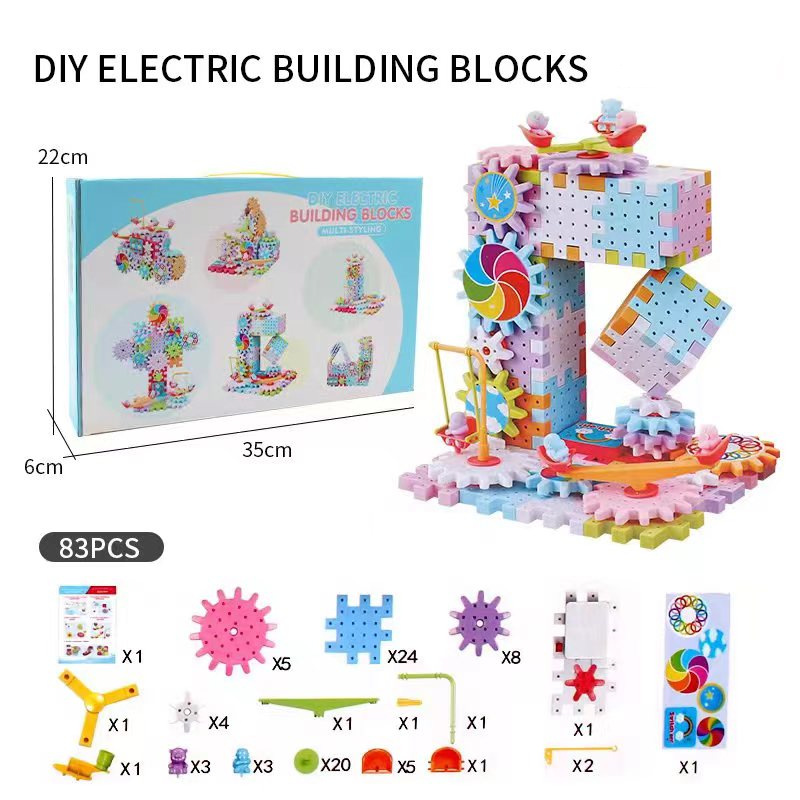 변수 전기 기어 회전 빌딩 블록 DIY 패치 워크 조기 교육 대형 입자 퍼즐 전자 상거래 라이브 스톨 공급