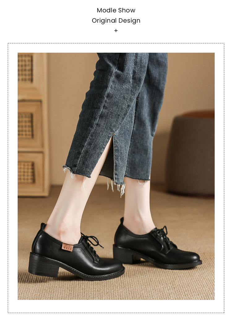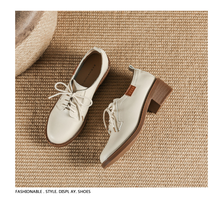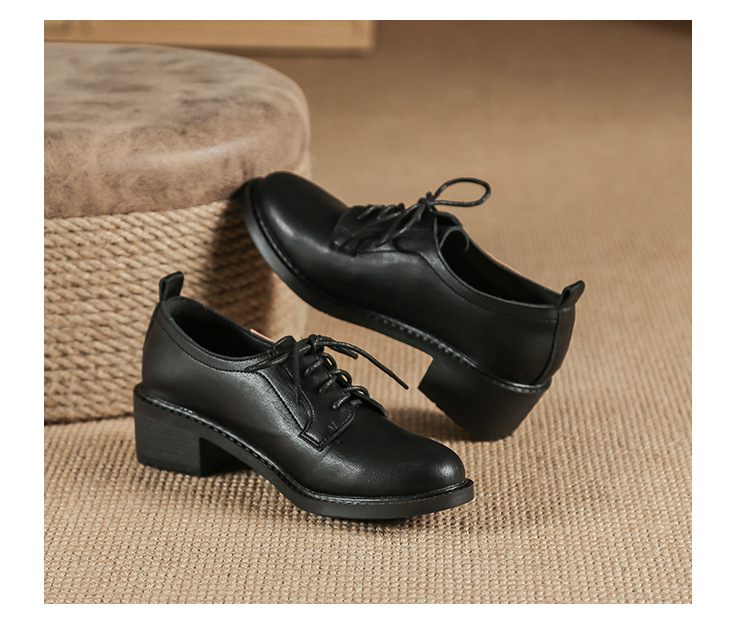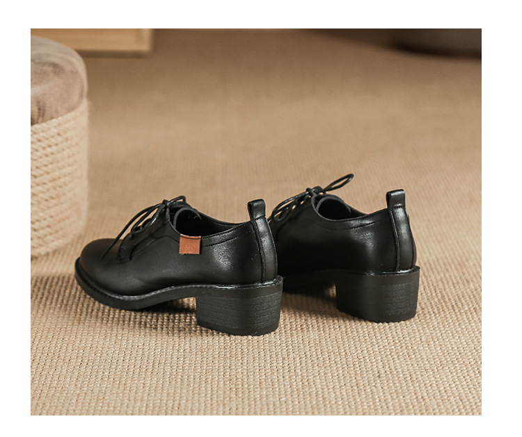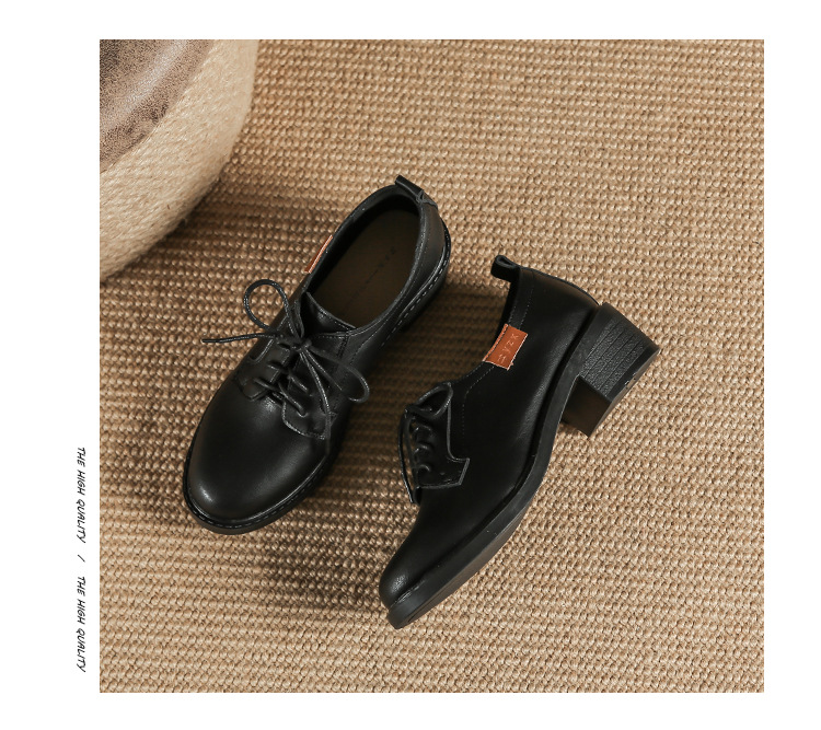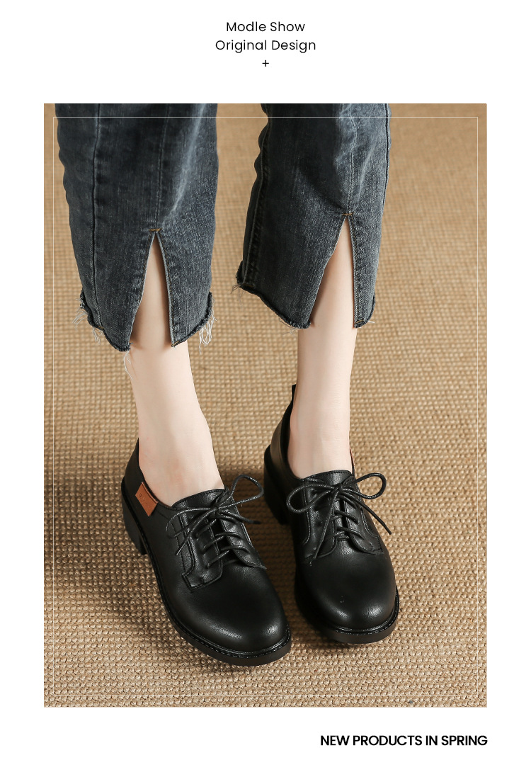 끈이 달린 다용도 천연 가죽 여성용 신발, 부드러운 밑창, 봄과 가을용 작은 가죽 신발, 면접 및 직장용, 스커트와 함께 착용하는 두꺼운 굽 높이 증가 브로그 슈즈스토어 가기