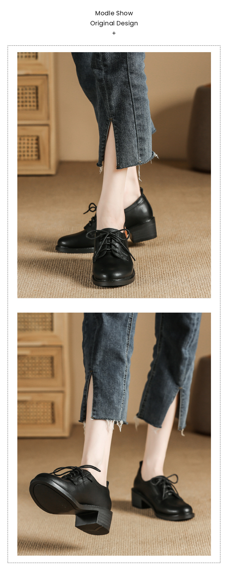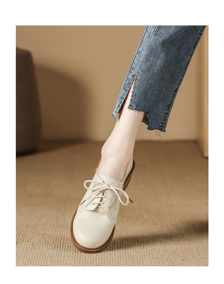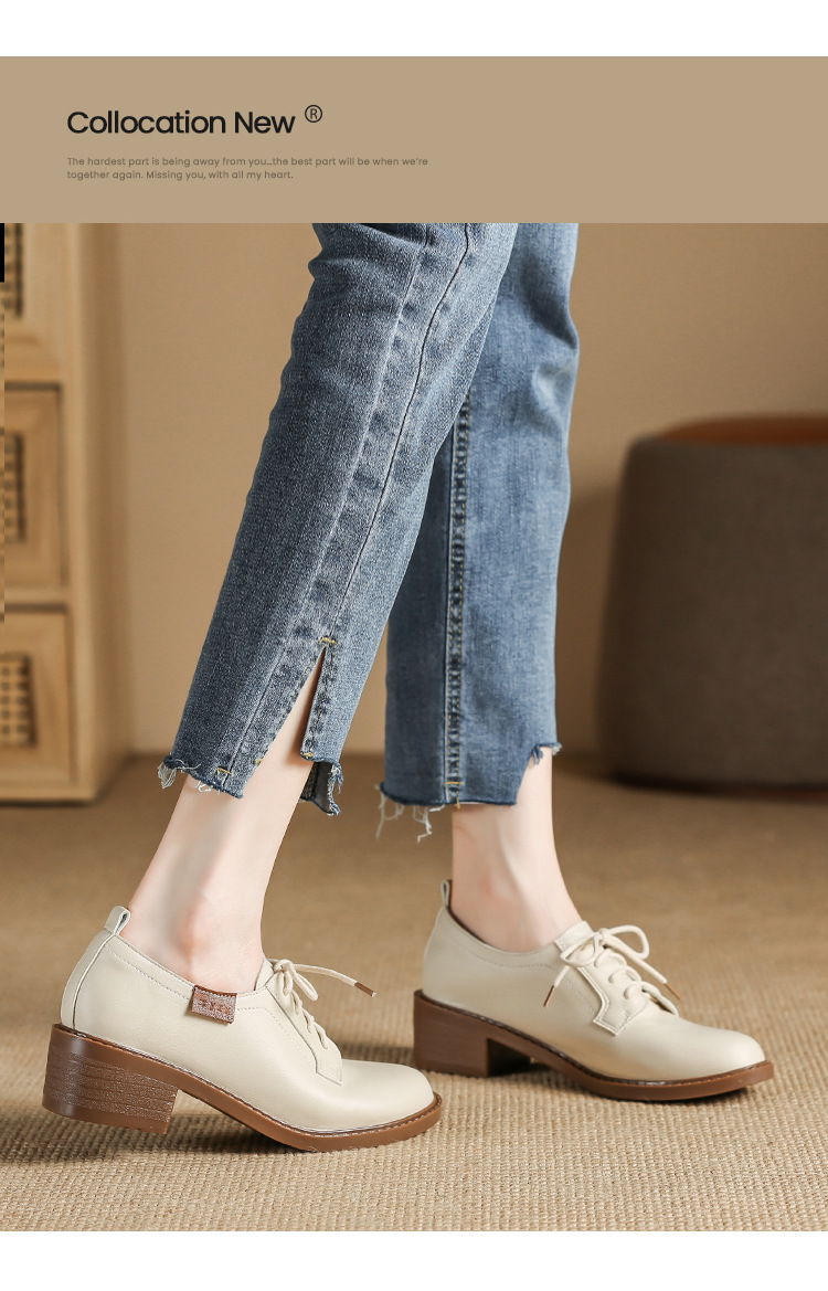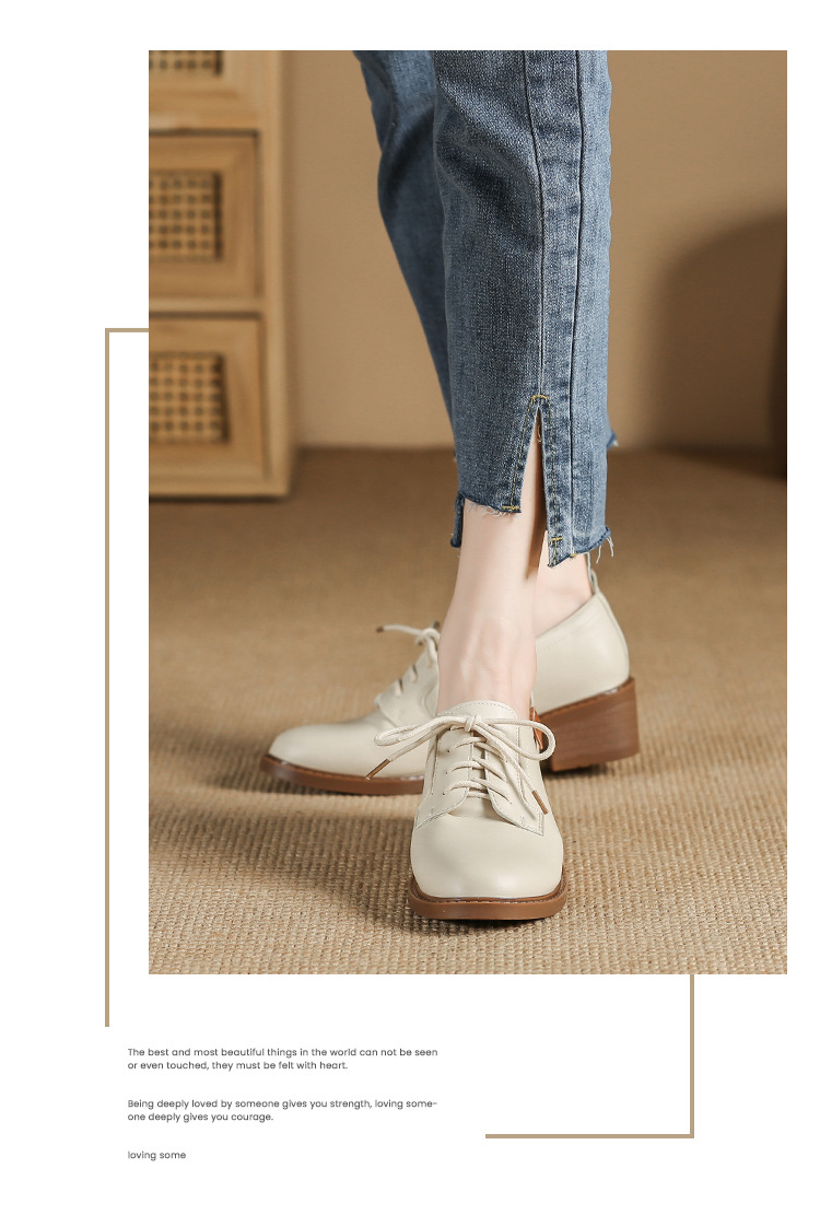 끈이 달린 다용도 천연 가죽 여성용 신발, 부드러운 밑창, 봄과 가을용 작은 가죽 신발, 면접 및 직장용, 스커트와 함께 착용하는 두꺼운 굽 높이 증가 브로그 슈즈스토어 가기
