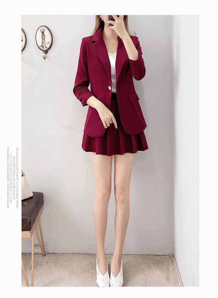봄과 가을 패션 레드 세트 세트 여자의 우아한 세트 주름 치마 투피스 세트 대학 스타일 연령 감소 서양 스타일 유행스토어 가기