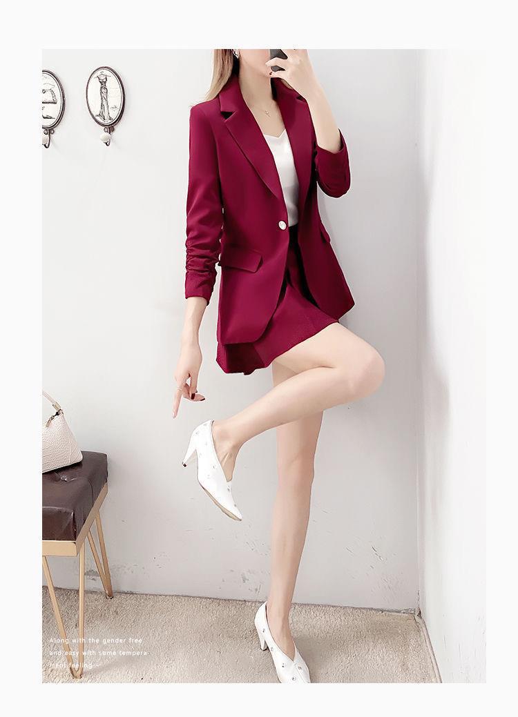 봄과 가을 패션 레드 세트 세트 여자의 우아한 세트 주름 치마 투피스 세트 대학 스타일 연령 감소 서양 스타일 유행