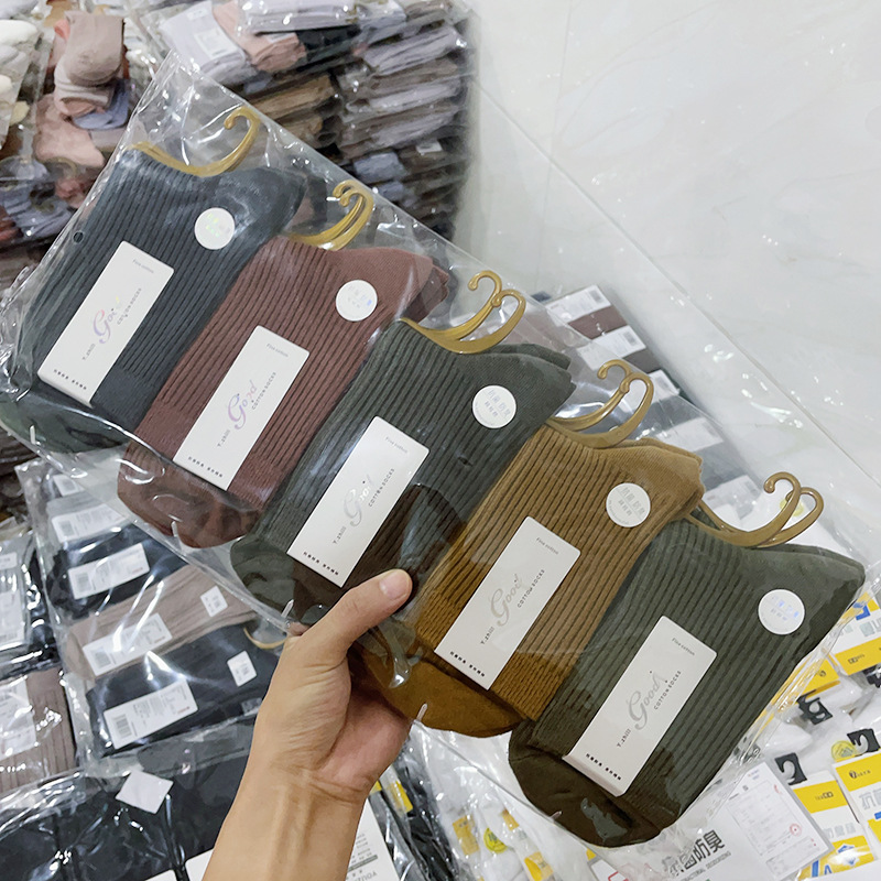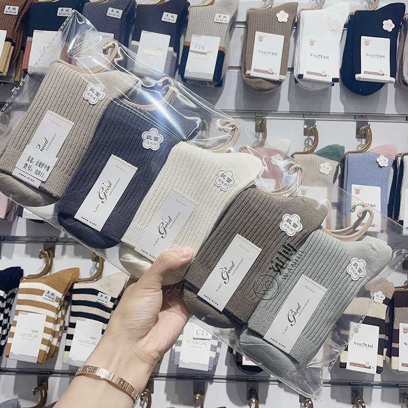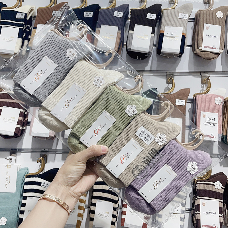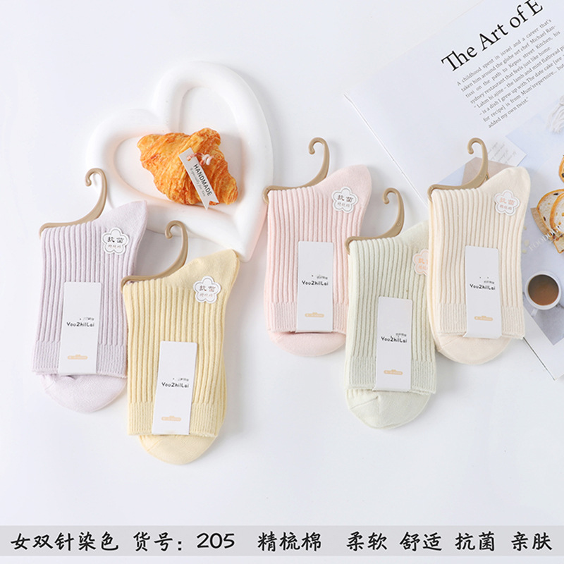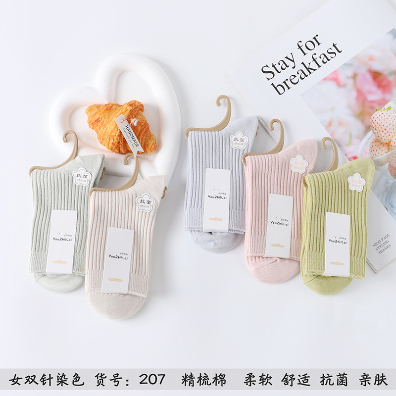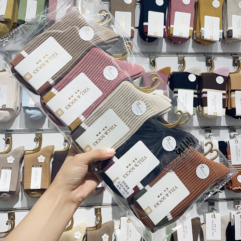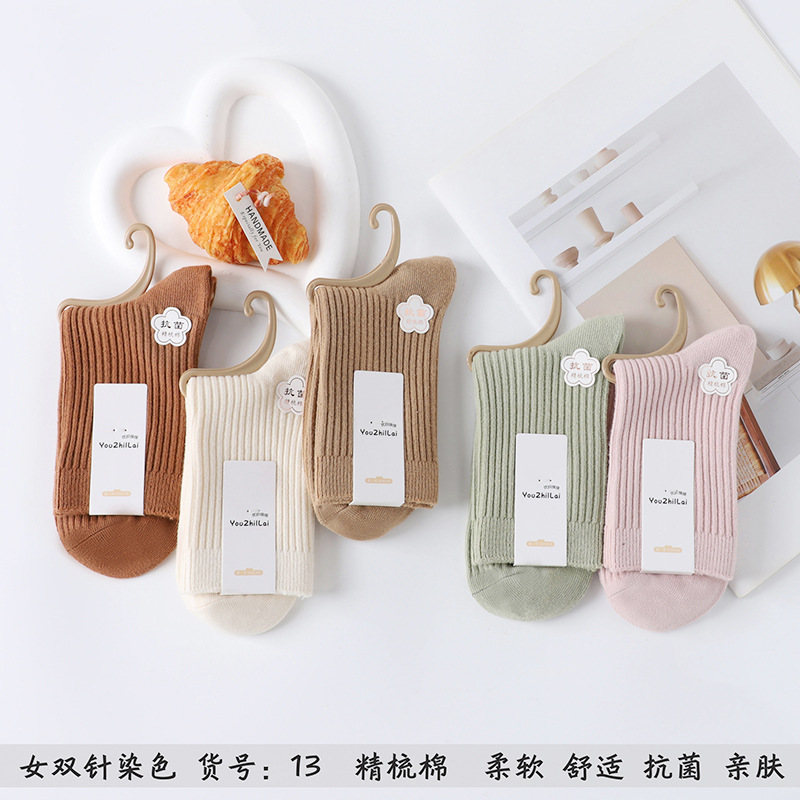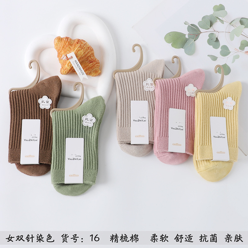 봄가을 여성용 단색 면양말, 긴 양말, 중목 양말, 코마면 이중바늘 파일 양말, 여성 양말, 제조업체 도매스토어 가기