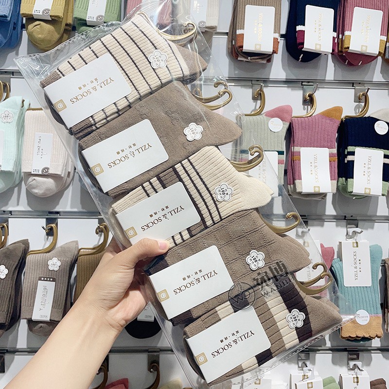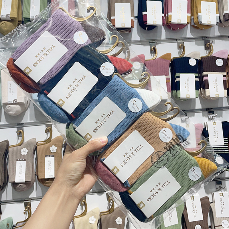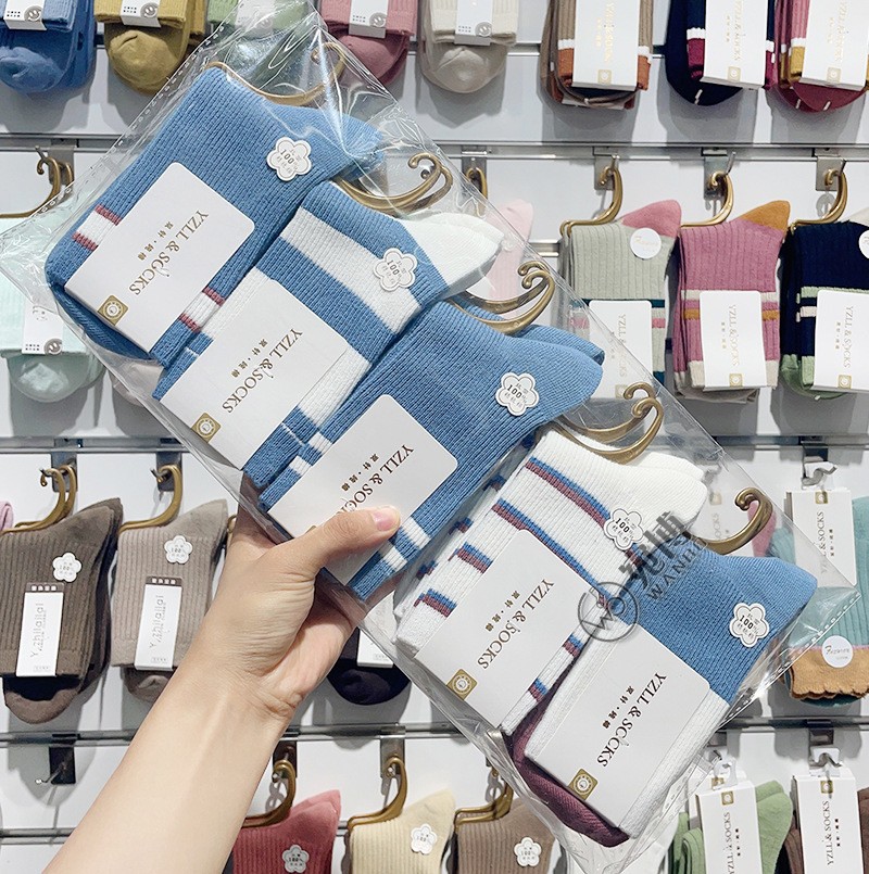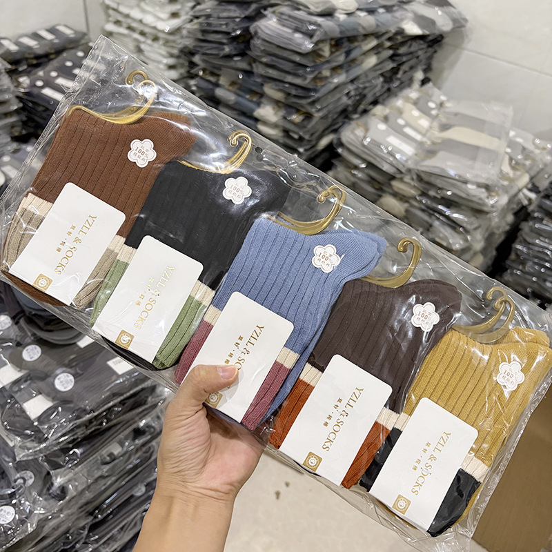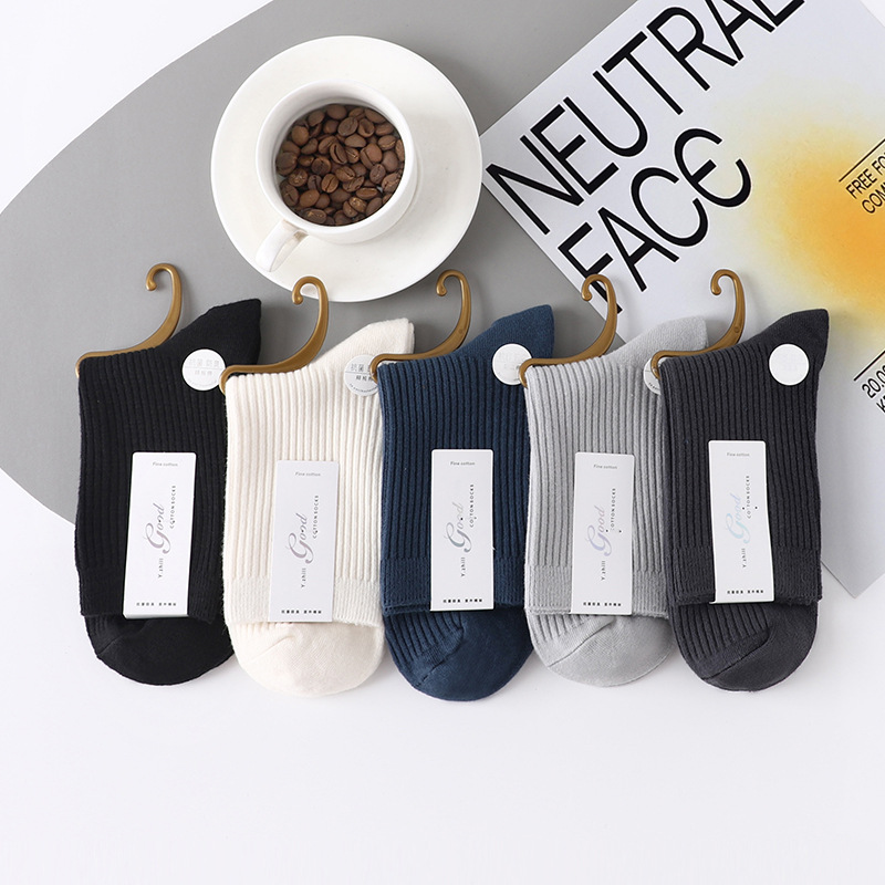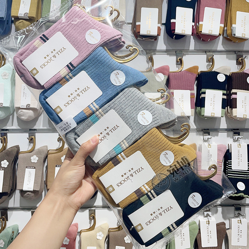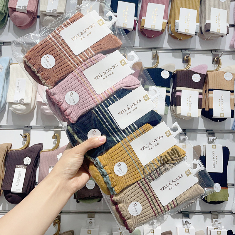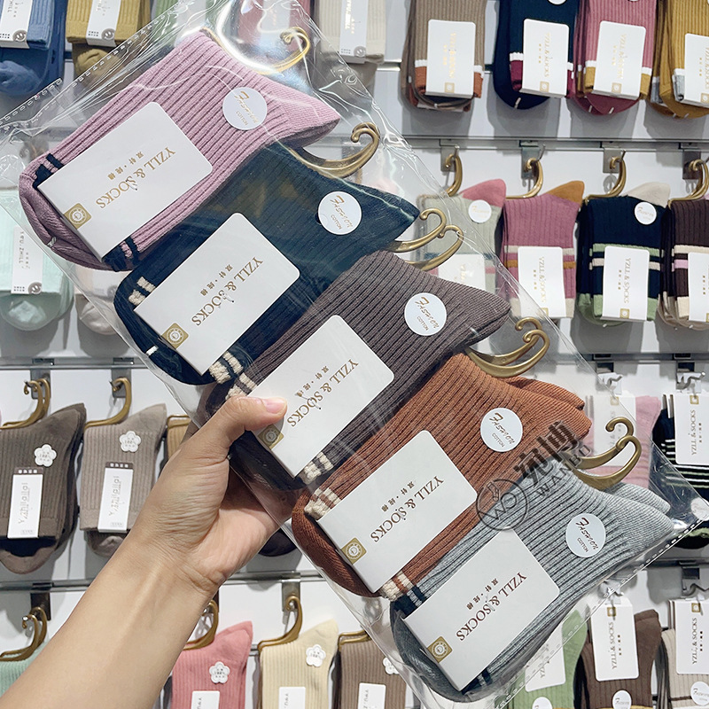 봄가을 여성용 단색 면양말, 긴 양말, 중목 양말, 코마면 이중바늘 파일 양말, 여성 양말, 제조업체 도매스토어 가기