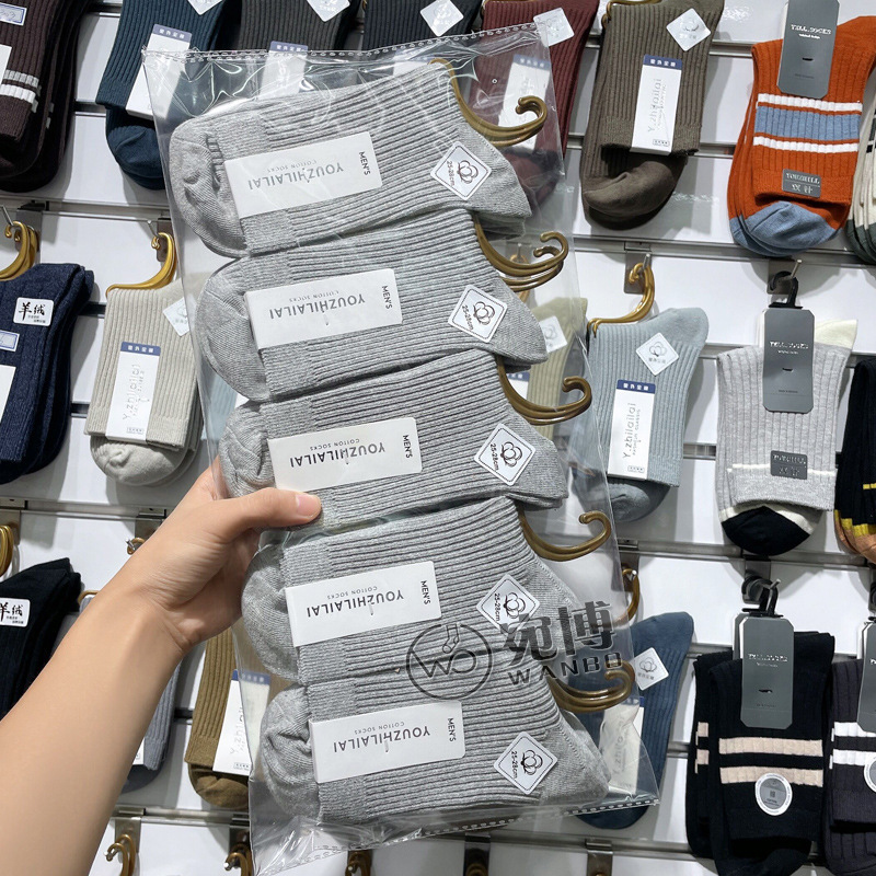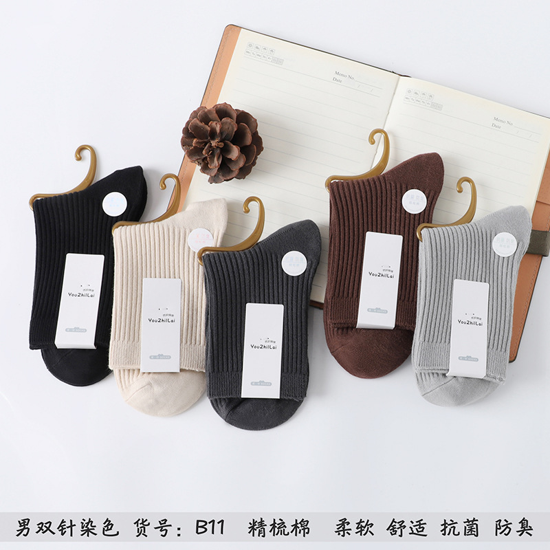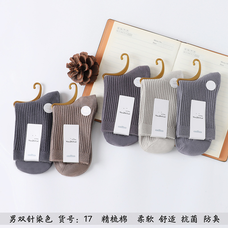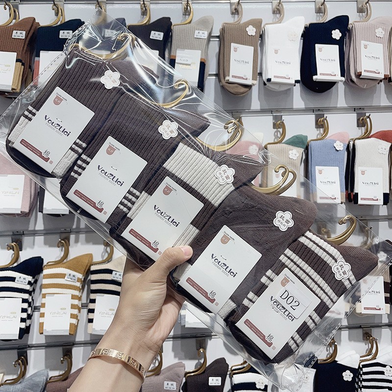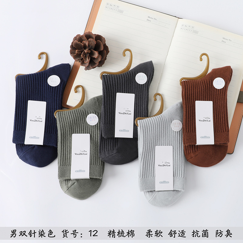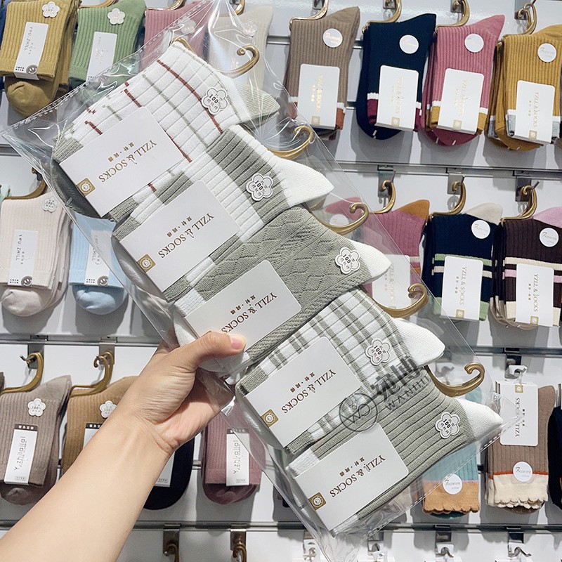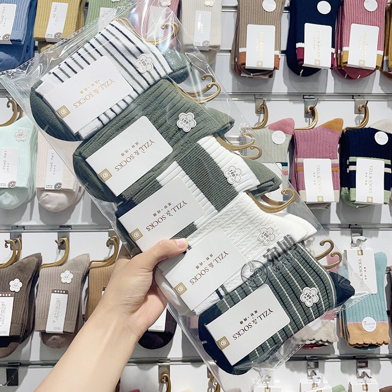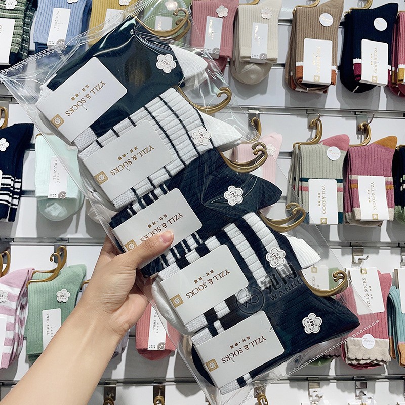 봄가을 여성용 단색 면양말, 긴 양말, 중목 양말, 코마면 이중바늘 파일 양말, 여성 양말, 제조업체 도매스토어 가기