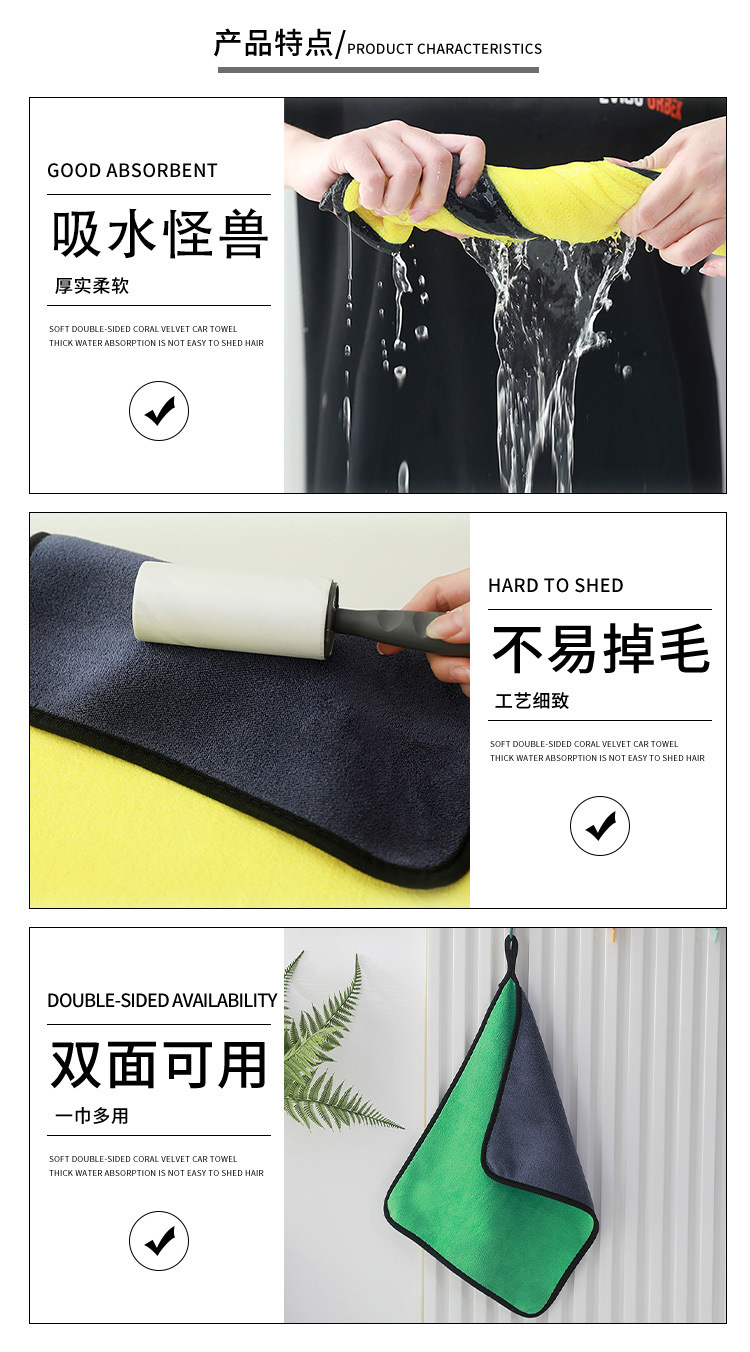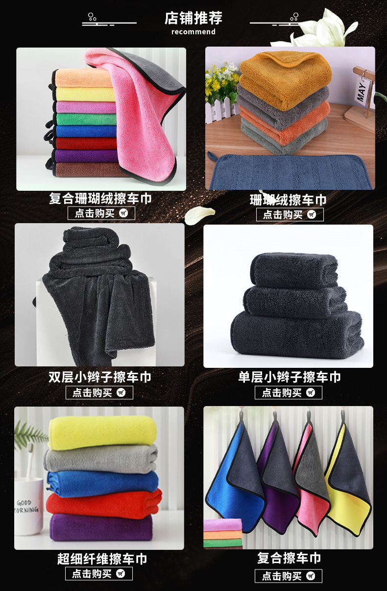 양면 두꺼운 자동차 닦는 수건, 가정용 청소 수건, 유리 닦는 천, 흡수성, 흔적 없는 산호 벨벳 세차 수건스토어 가기