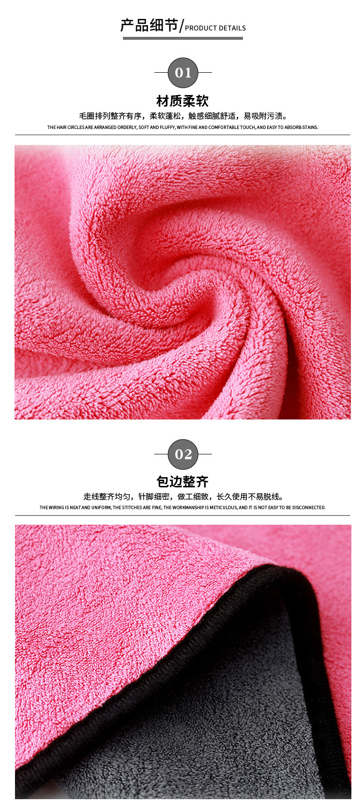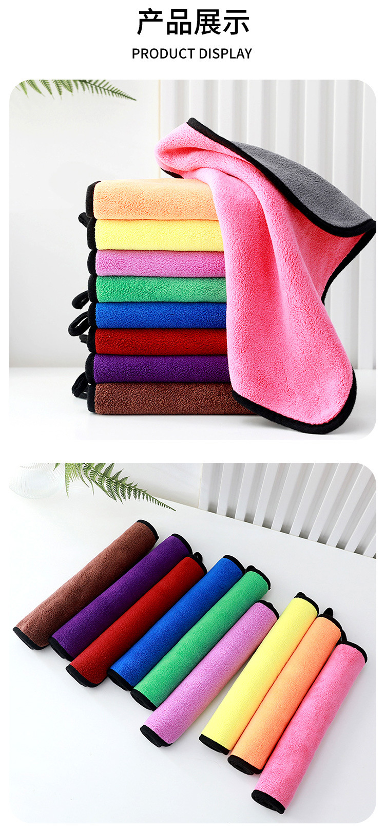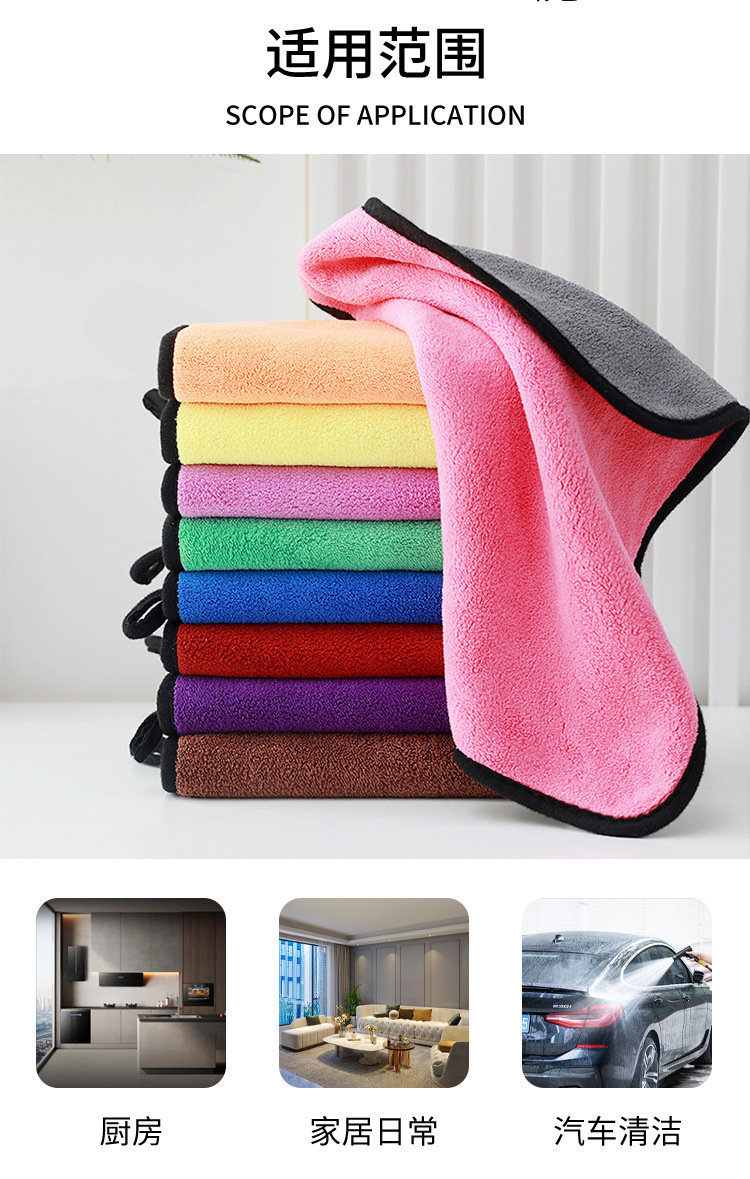 양면 두꺼운 자동차 닦는 수건, 가정용 청소 수건, 유리 닦는 천, 흡수성, 흔적 없는 산호 벨벳 세차 수건