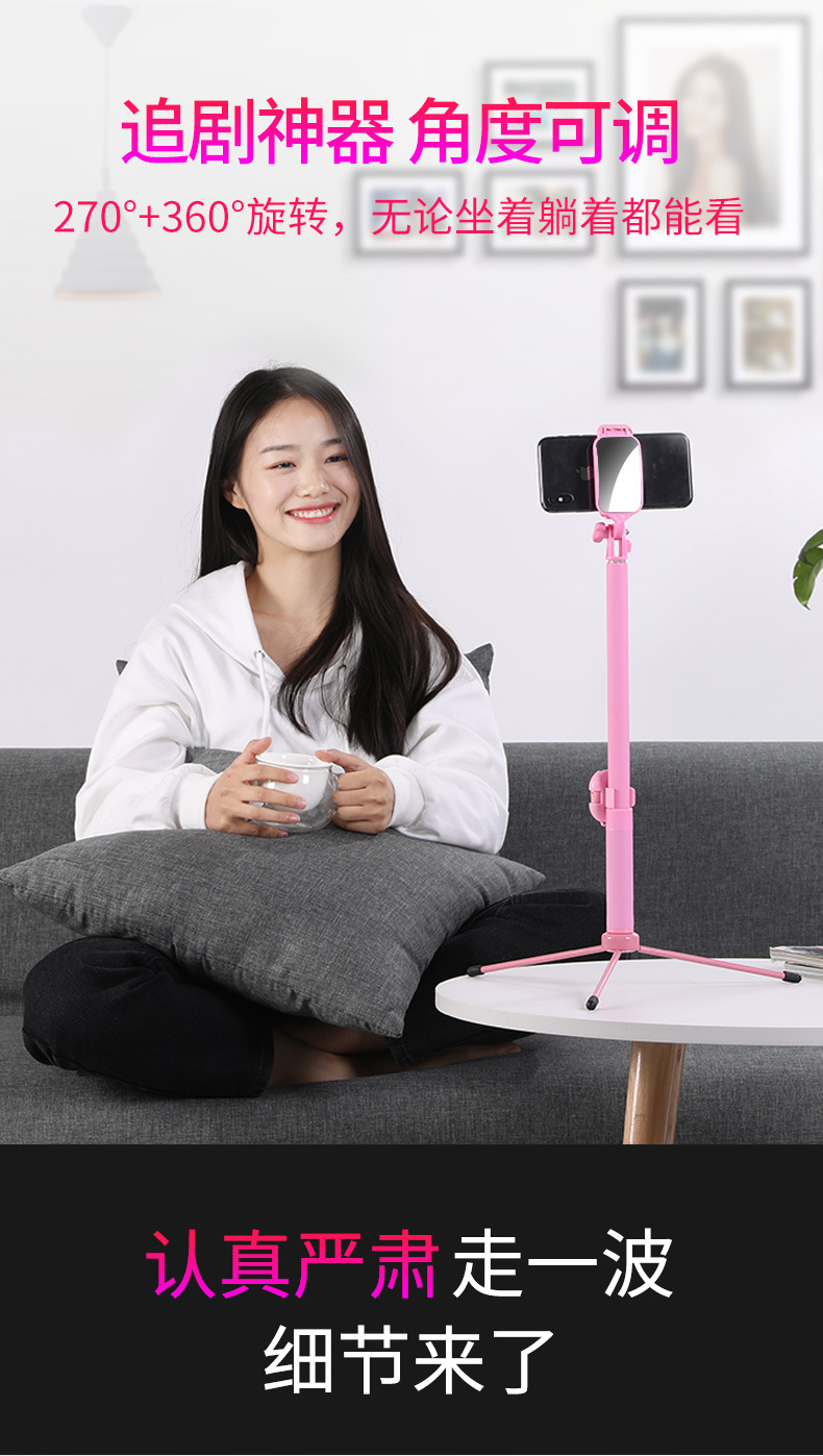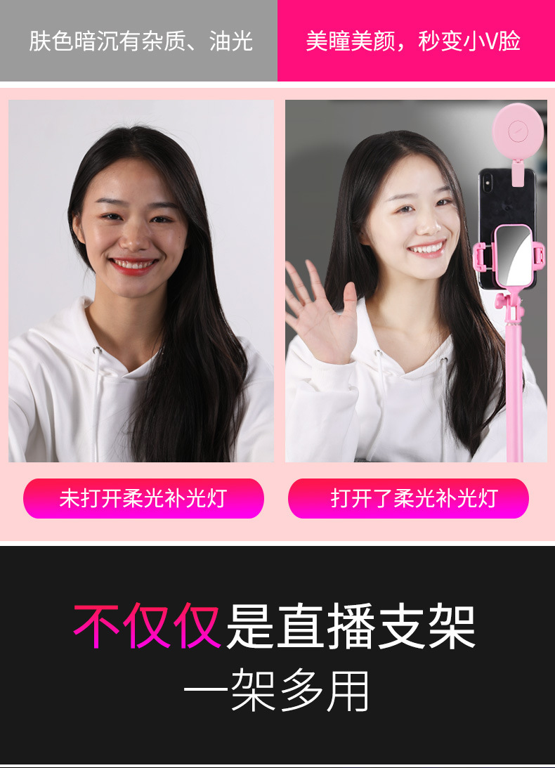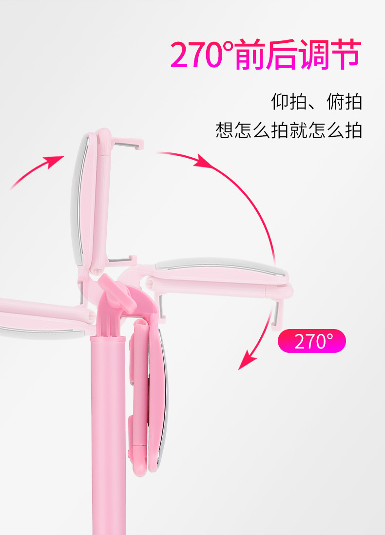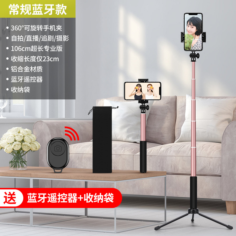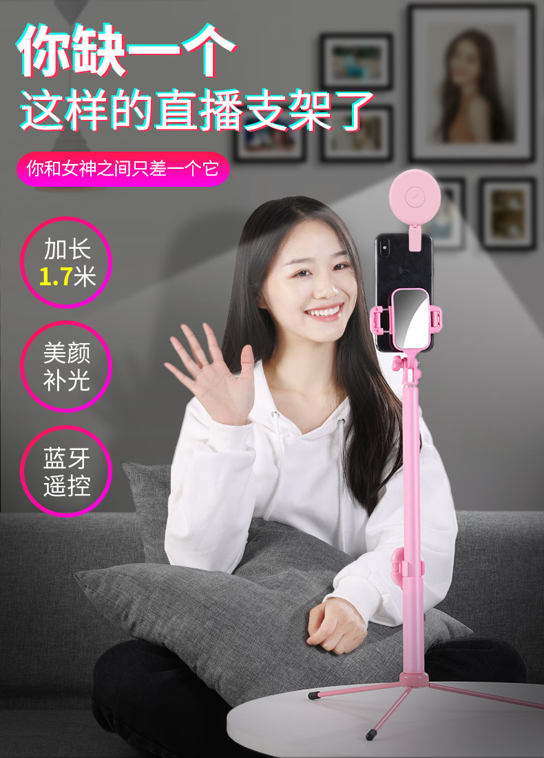 • [로즈 골드] 1.7 m 알루미늄 합금 축 + 대형 금속 삼각대 + 일반 리모콘 + 화장 거울 등