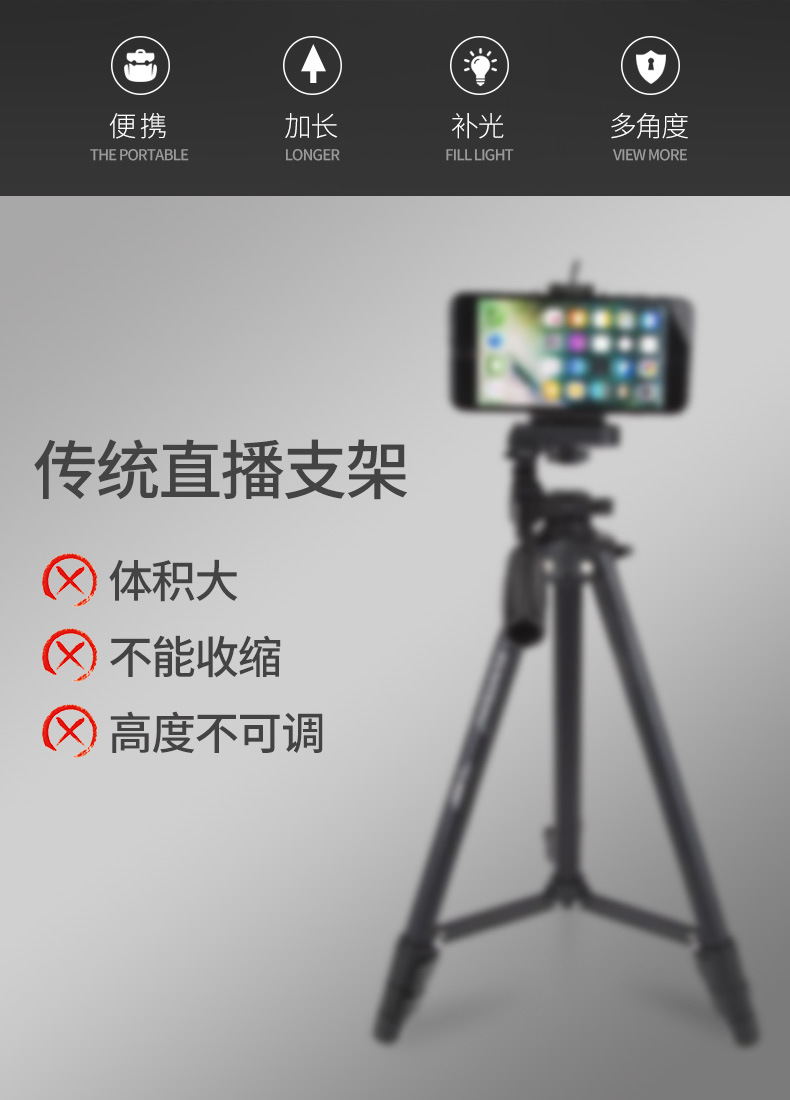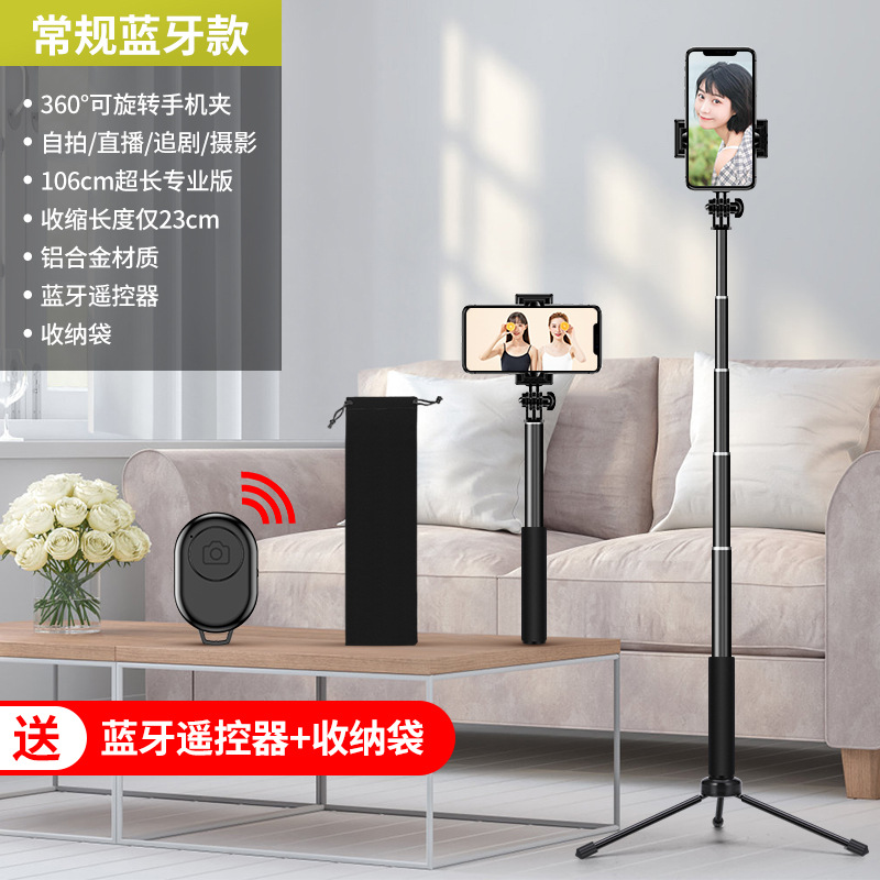 • [엘레강트 블랙] 1.7 m 알루미늄 합금 샤프트 + 금속 삼각대 + 일반 리모컨 + 화장품 미러 라이트