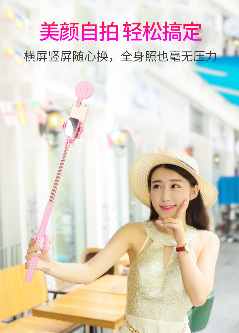 • [Android] 로즈 골드 소켓 와이어 컨트롤 셀카 스틱 + 삼각대