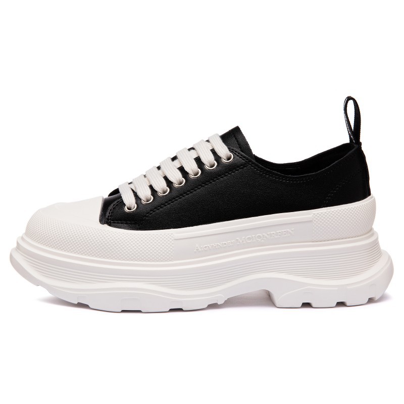 맥퀸 천연 가죽 여성 신발 2025년 봄 가을 키높이 두꺼운 밑창 아빠 신발 캐주얼 운동화 통기성 편안함스토어 가기