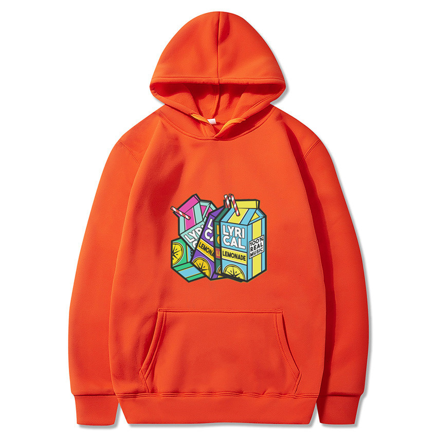 크로스 보더 레모네이드 레몬 프린트 남성과 여성 후드를위한 유럽 및 미국 벨벳 후드스토어 가기