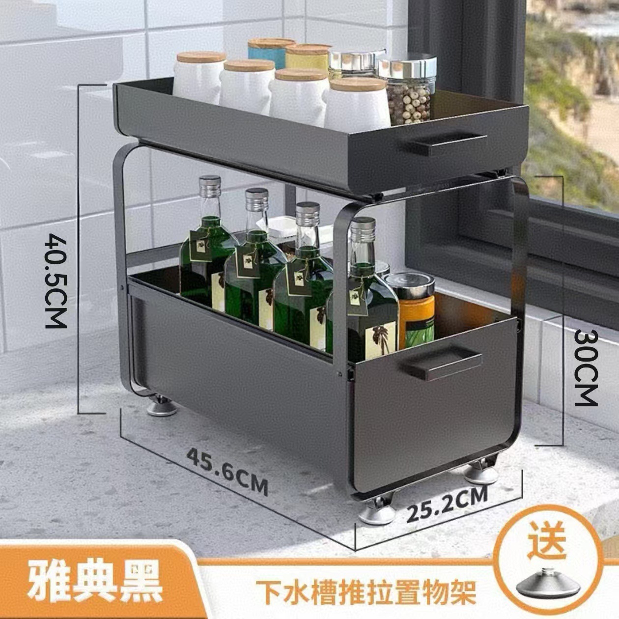 싱크대 아래 주방 텔레스코픽 랙 다기능 풀 아웃 스토리지 플로어 스탠딩 레이어드 푸시-풀 다목적 스토리지 랙