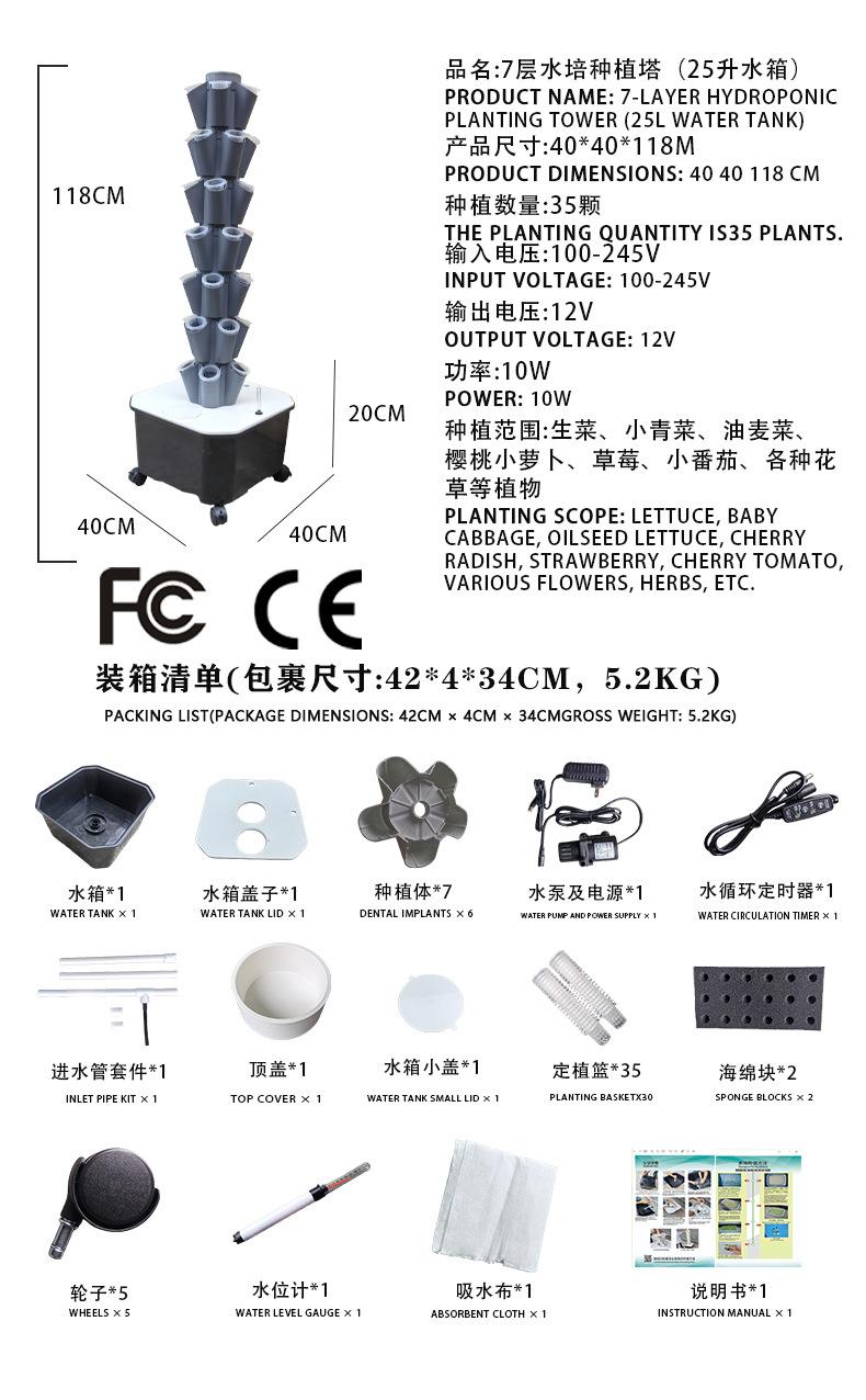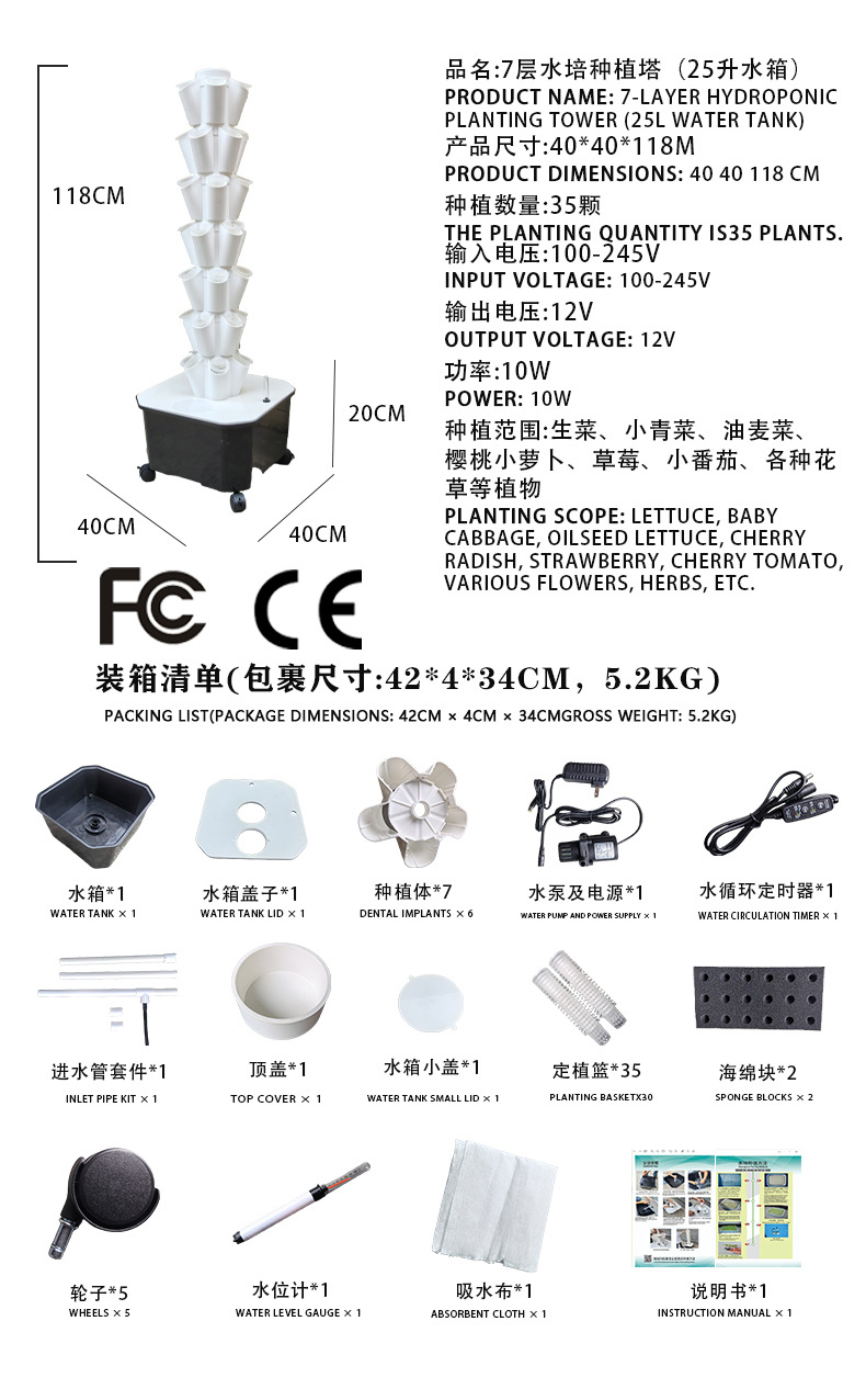 • 회색 7단 수경 재배 타워 (35구)