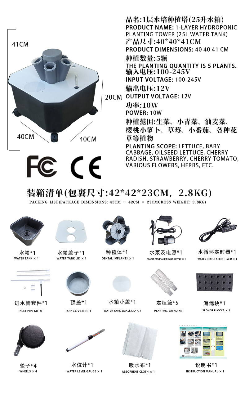 • 회색 - 1단 수경 재배 타워 (5구) - 25리터