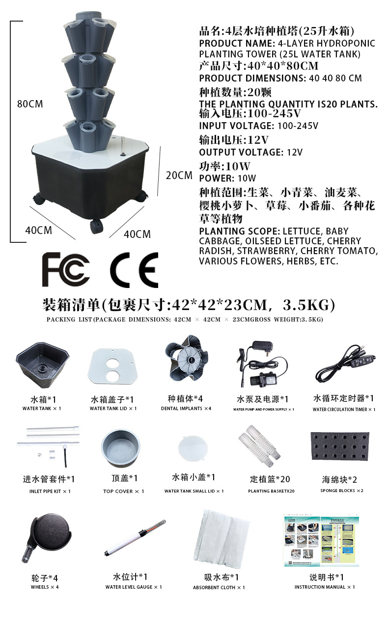 • 회색 4단 수경 재배 타워 (20구) - 25리터