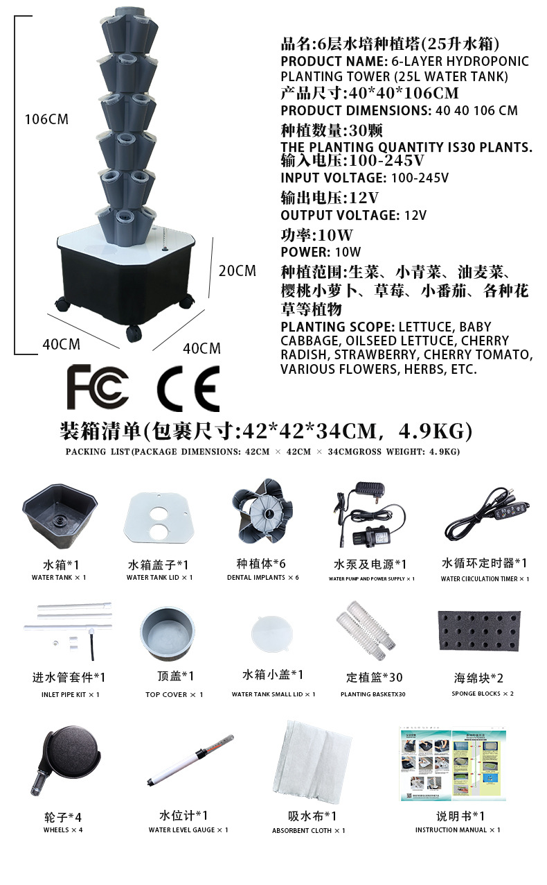 • 회색 6단 수경 재배 타워 (30구) - 25리터