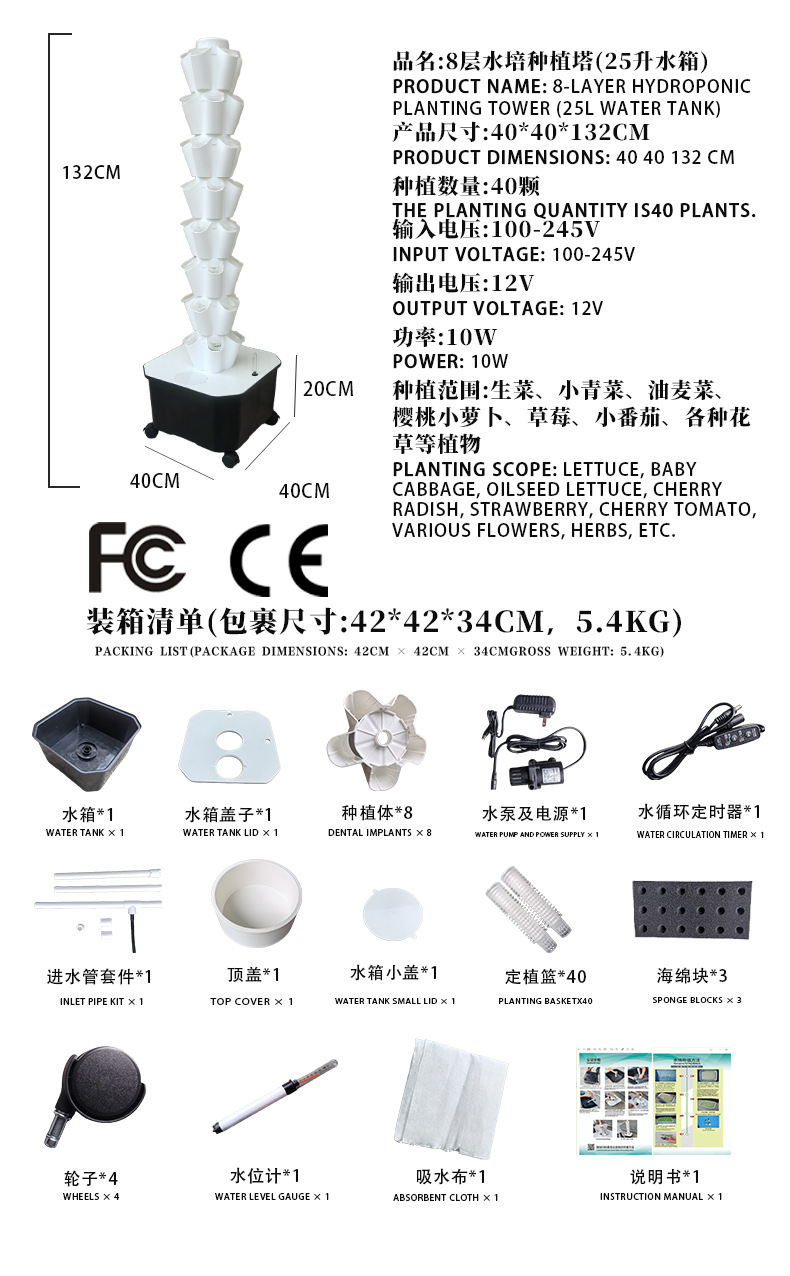 • 화이트 - 8단 수경 재배 타워 (40구) - 25리터