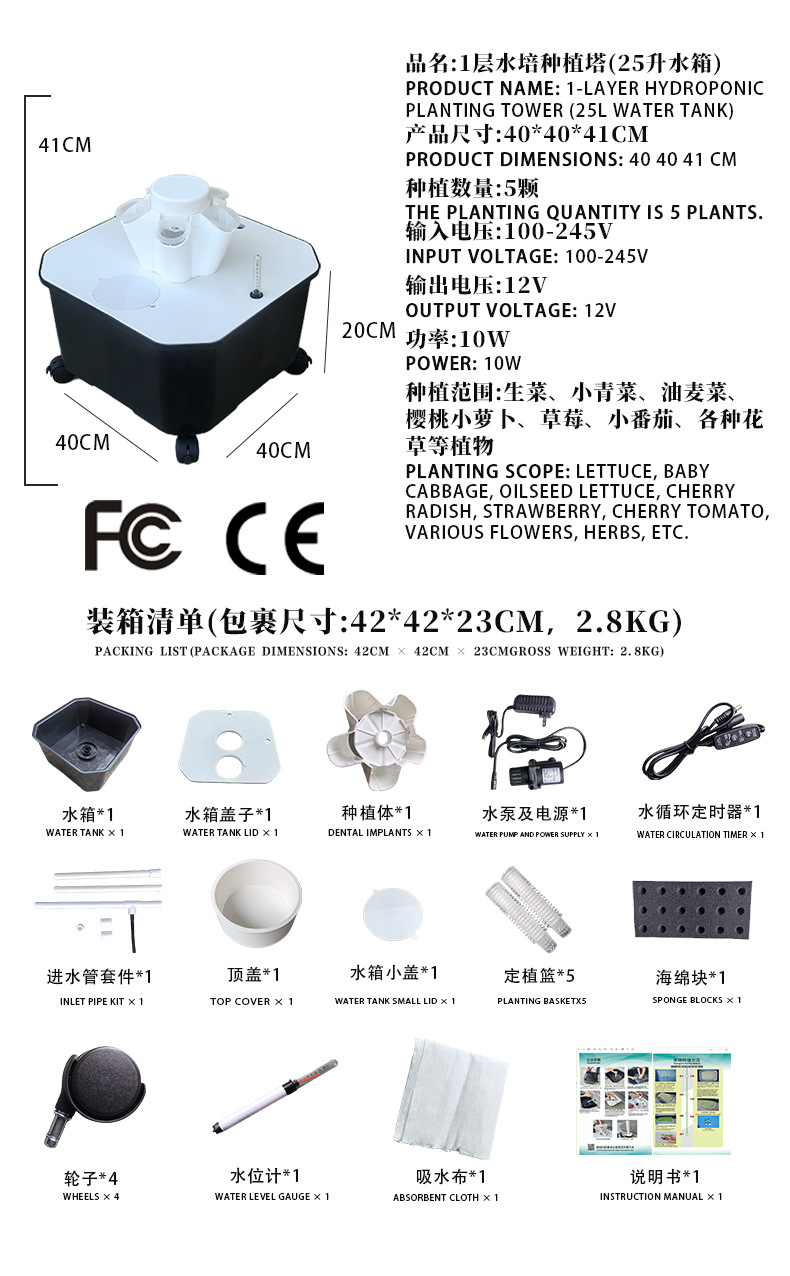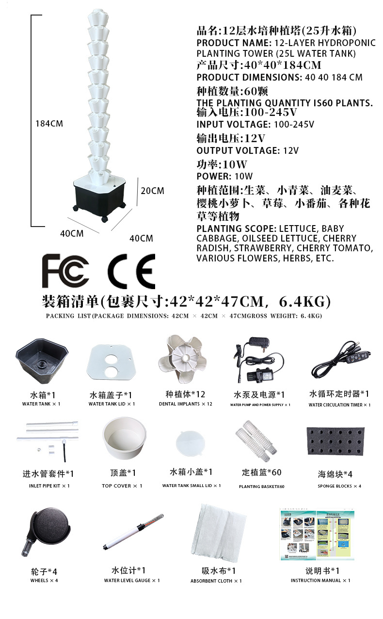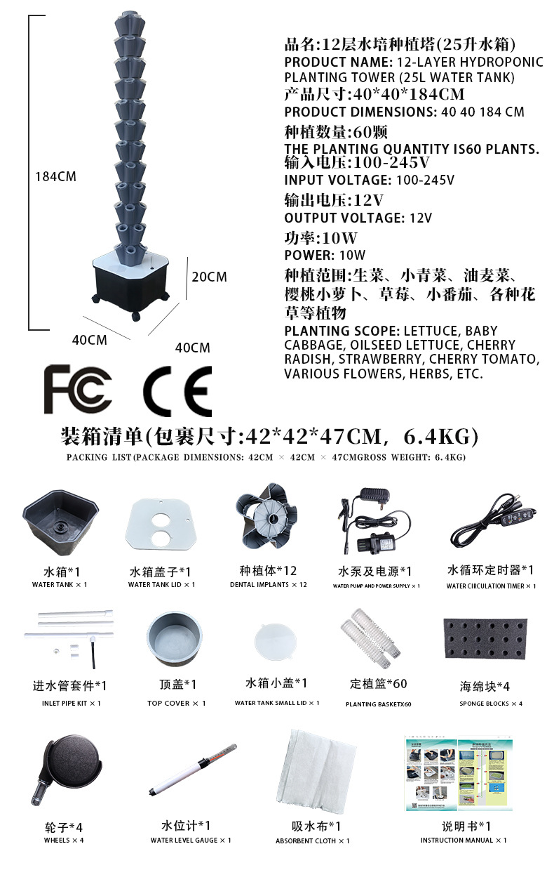 • 회색 - 12구 수경 재배 타워 (60홀) - 25리터