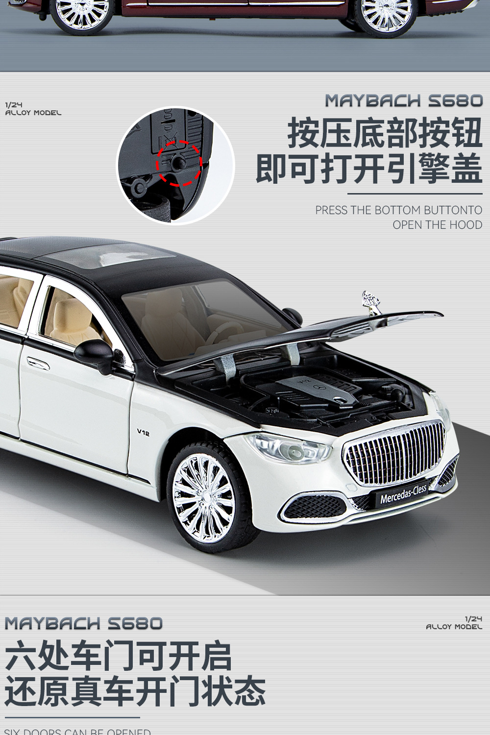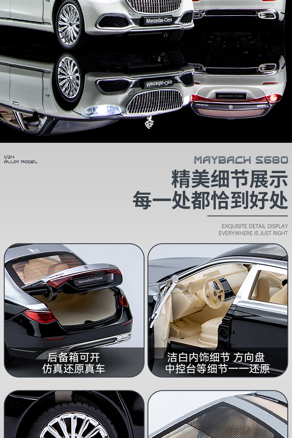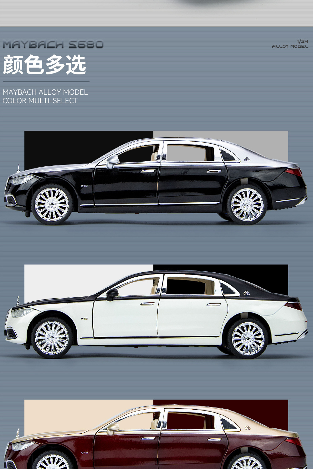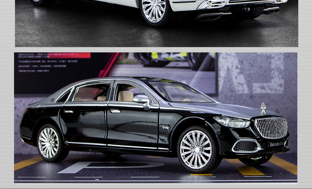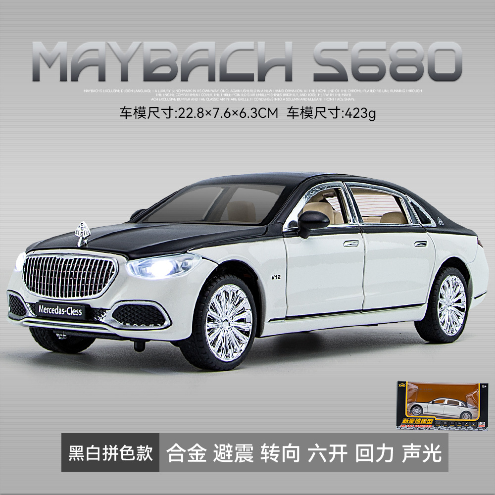 새로운 Haodi C2409 창 상자 Maybach 680 시뮬레이션 1/24 어린이 소리와 빛 풀백 합금 자동차 모델 장난감스토어 가기